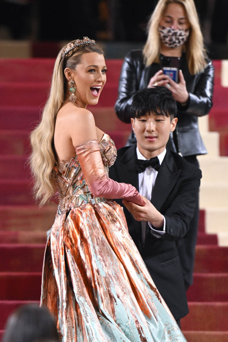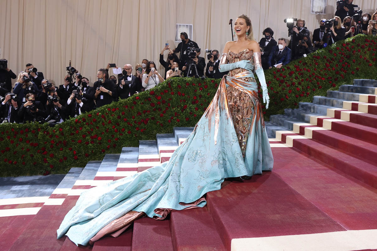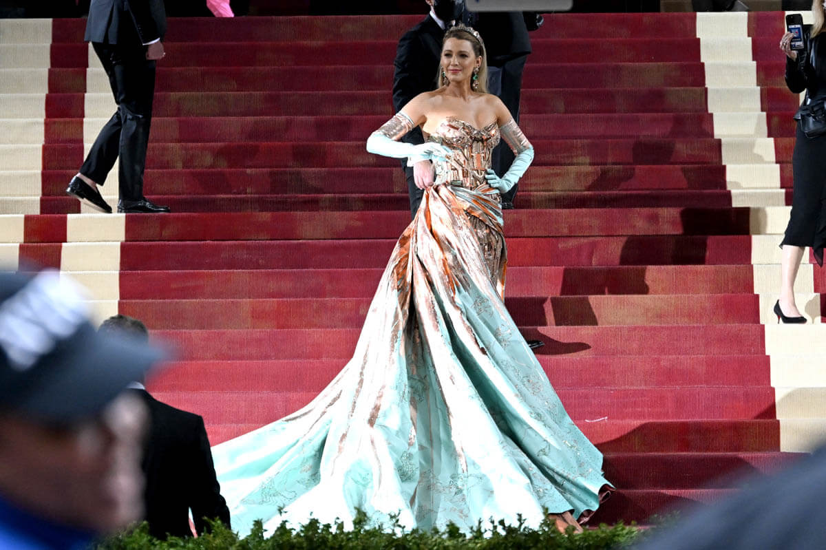 Co-chair of the 2022 #MetGala, @BlakeLively, stuns in a Versace gown that pays homage to New York City. See more here: pic.twitter.com/7IWzS6nKdZ