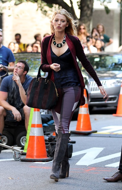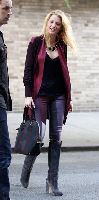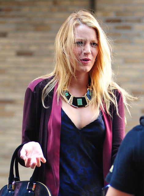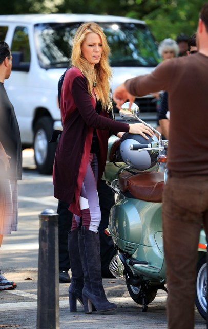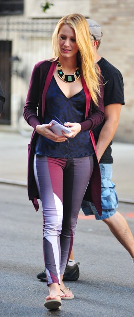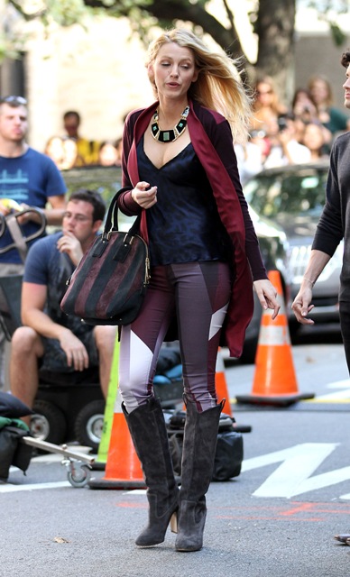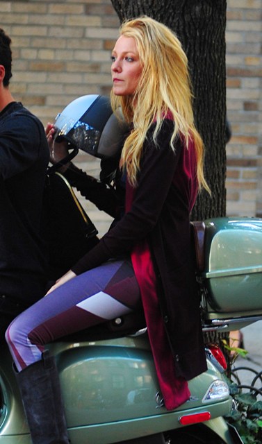 Here’s Blake wearing patchy pants on the set of Gossip Girl the other day. She’s arranged very few photo opportunities with Ryan lately. Am told that the disinclination is on his part. And besides, there’s not much to say. Apparently since love with Ryan, the career hasn’t been as much of a priority as it used to be. We’re about 3 months away from Ryan marking two years split from Scarlett Johansson. Is that enough time to give marriage another go? It’s definitely where it’s headed.
