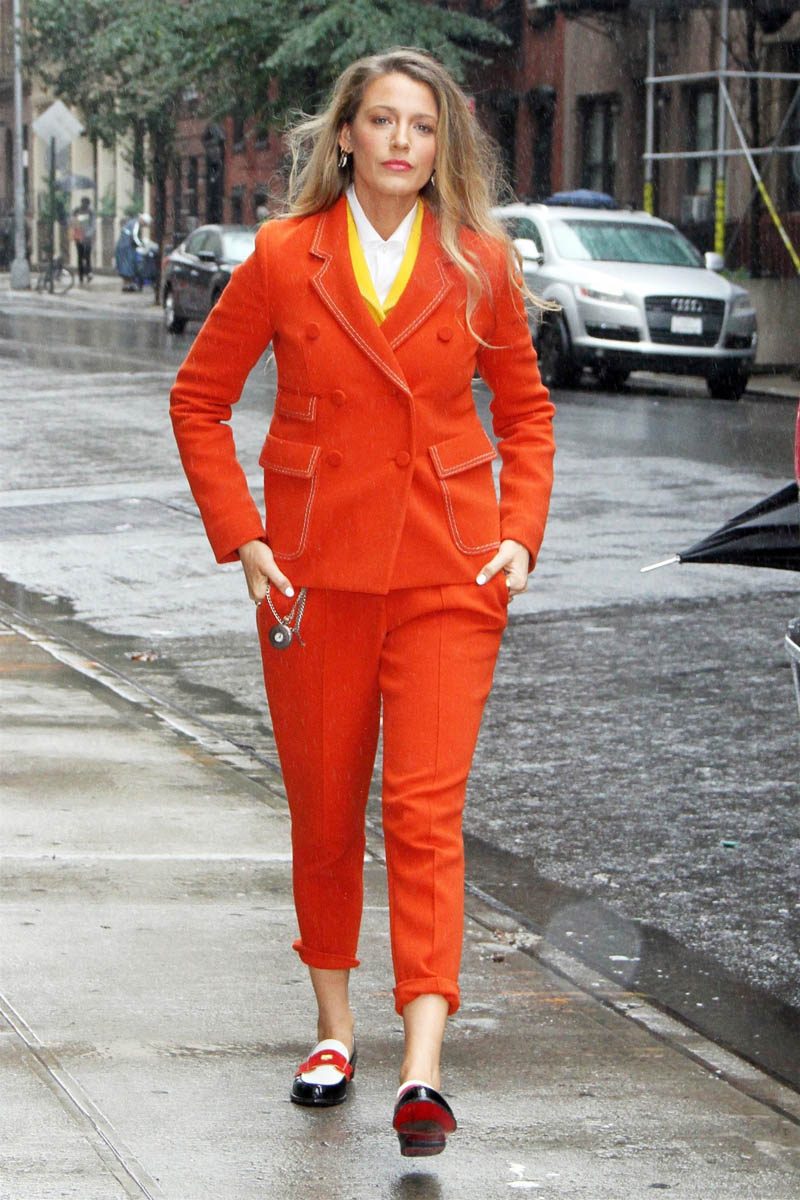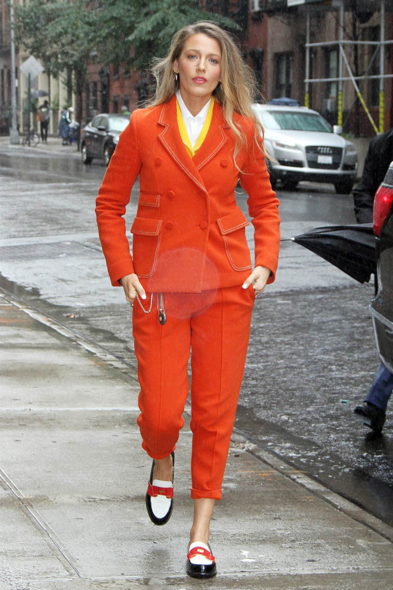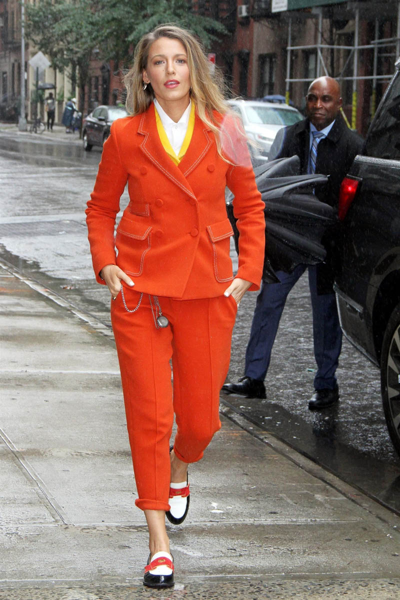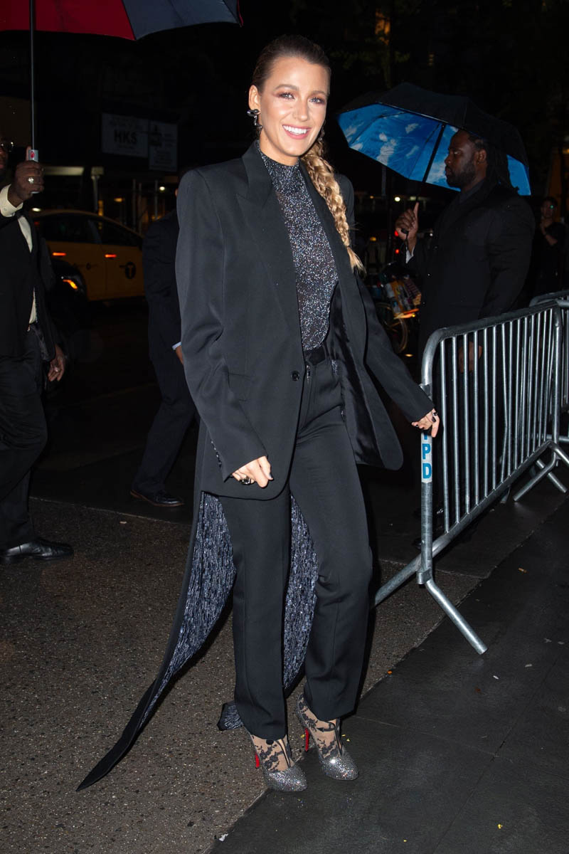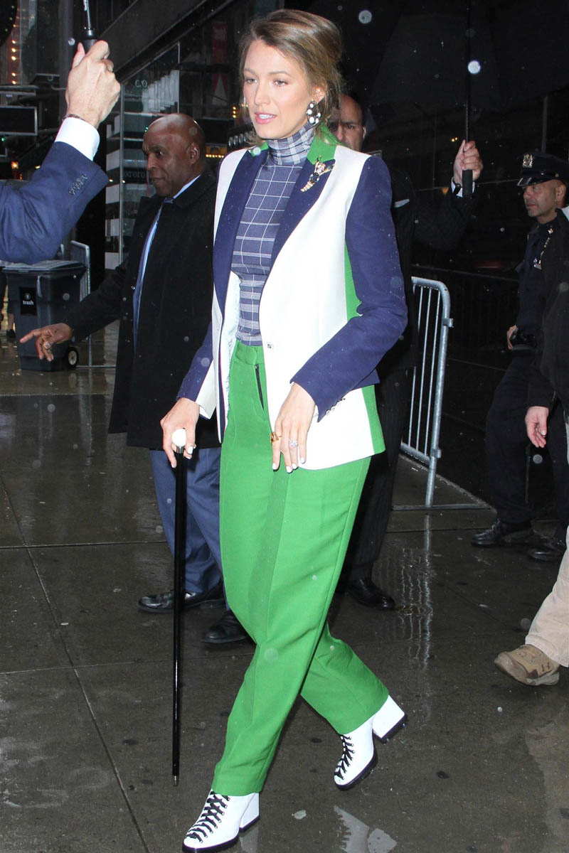 Yesterday, I described one of Blake Lively’s outfits as “P.T. Barnum meets Tuxedo Mask”. Now she’s just fully cosplaying as Willy Wonka walking around New York City with a literal cane. At first I thought that she was campaigning to play the Penguin in the next Batman movie but the backstory on Blake’s fashion cane is that she is channeling her director Paul Feig, a “noted cane enthusiast". Rich people need hobbies too. Paul’s style apparently inspired the look of Blake’s character in A Simple Favor and she’s been dressing in homage to that aesthetic throughout this press tour.