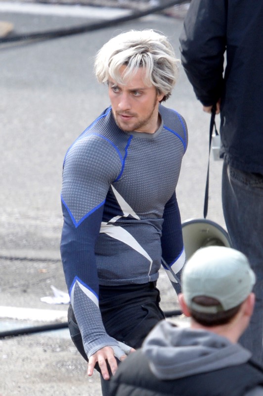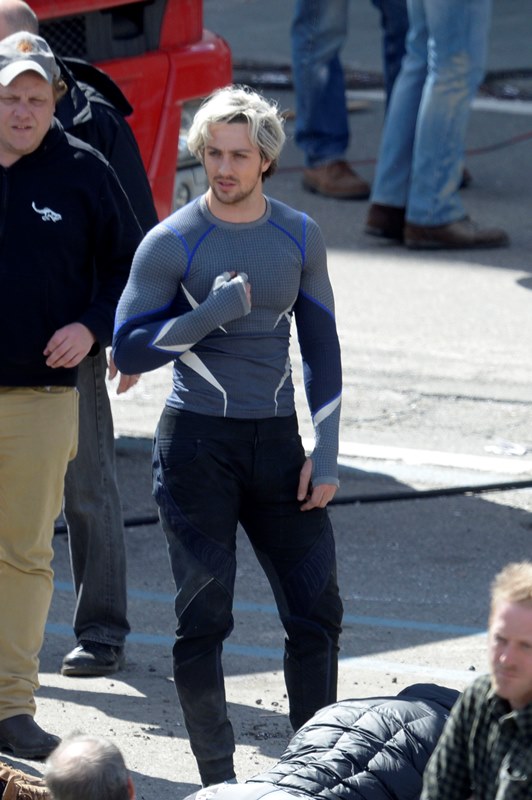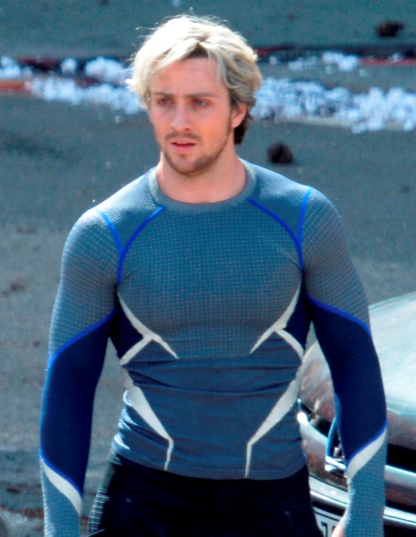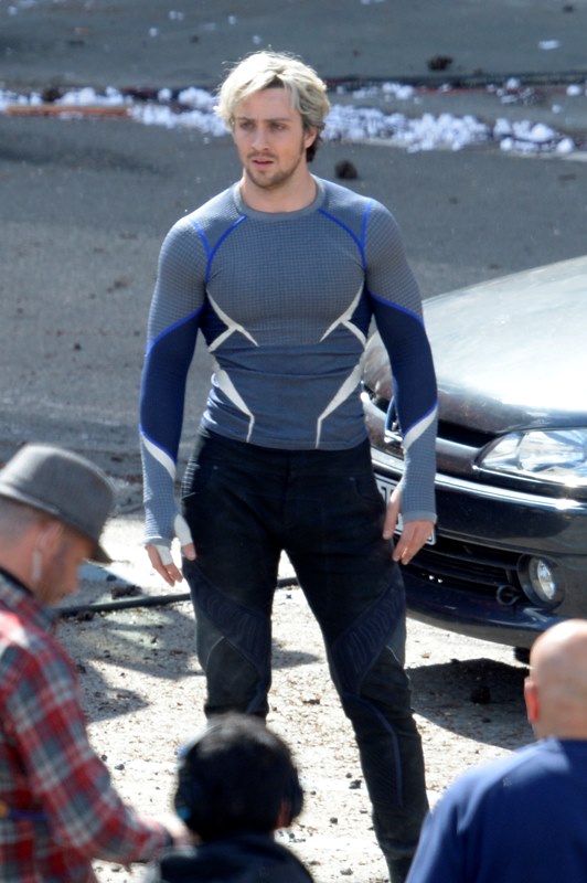 Joss Whedon is there, of course, because he did the best job of the first movie but also Jeremy Renner’s Hawkeye and Elisabeth Olsen as the Scarlet Witch. My attention however is totally focused on Aaron Taylor-Johnson, half of My Obsession. Who is now blonde. Bleach blonde. With some eyeliner.