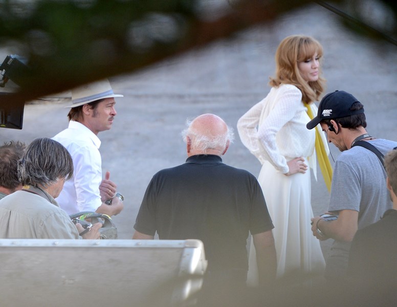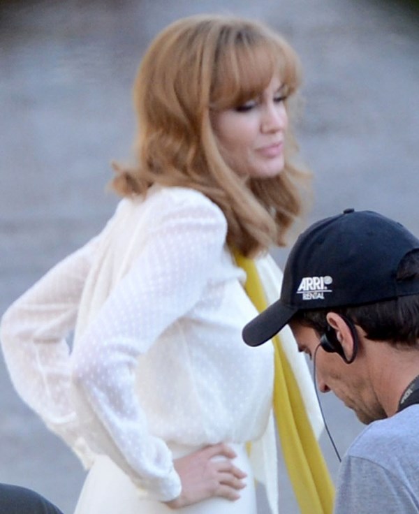 Angelina Jolie and Brad Pitt were photographed together on the set of By The Sea for the first time this week. She’s honey-blonde and heavily eye-lined. SO 70s. If you’re of my generation, do you have a shot of your mother in practically the same outfit? And hair?