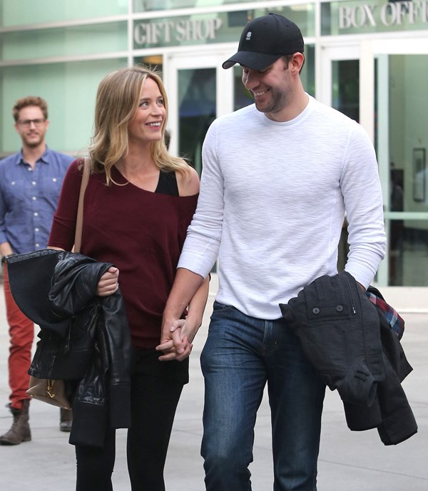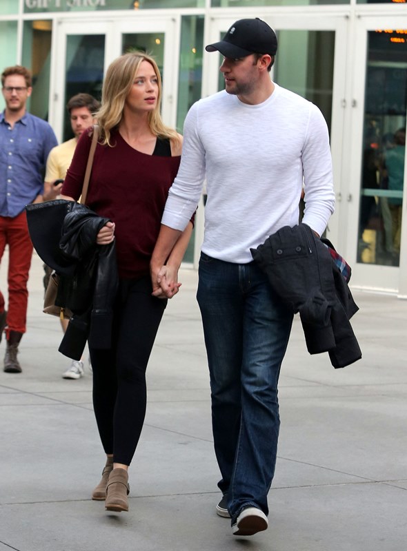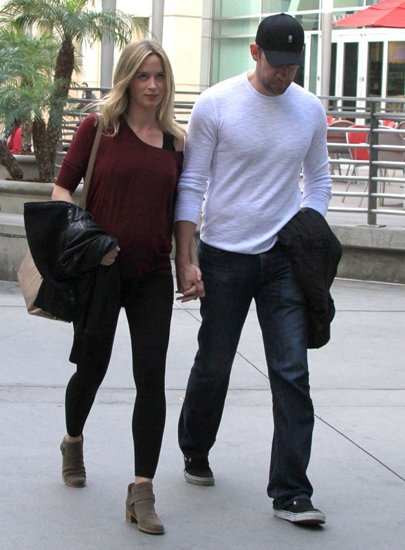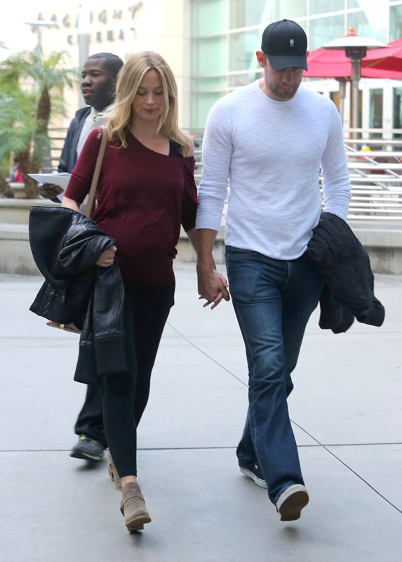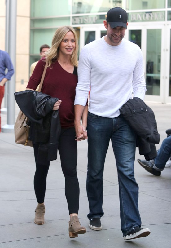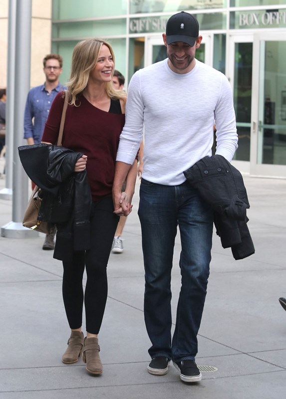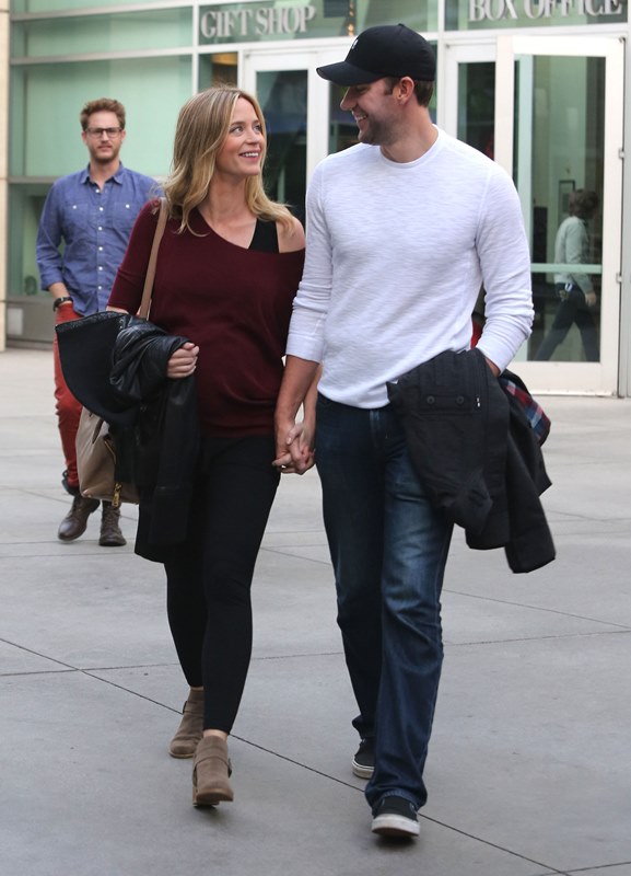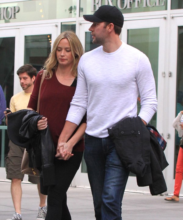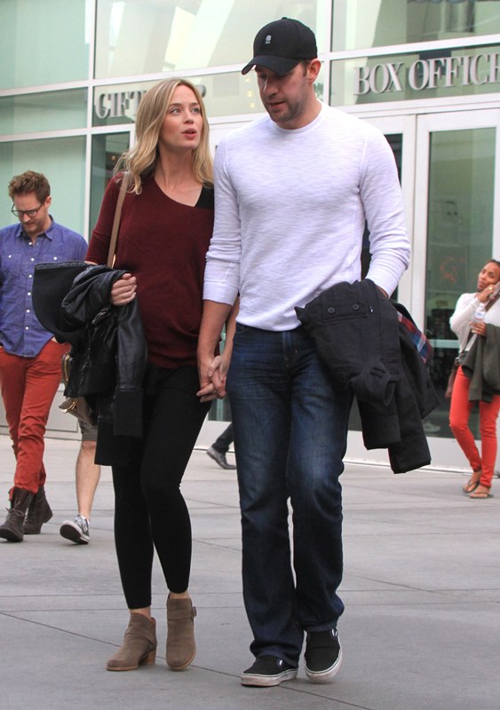 Why hadn’t I noticed how blonde she’s become? She was blonde 3 weeks ago when I last posted photos of her. It was tied up then, maybe that’s why. Here she is with her hair down yesterday out to the movies with John Krasinski. It’s quite light. I don’t remember her ever going this light.