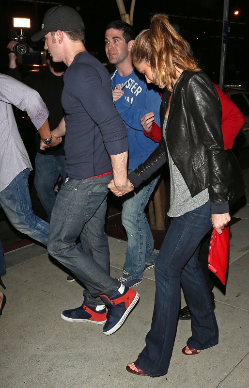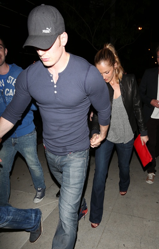 Minka Kelly and Chris Evans were photographed hand in hand leaving Bootsy Bellows in LA on Saturday night. They were photographed leaving Bootsy Bellows in exactly the same way back in January -- click here for a refresher. The difference this time? Minka is blonde now. And Chris is clearly in Captain America shape. The sequel, Captain America: The Winter Soldier, is in production right now. Captain America was blonde the first time, right? Pretty sure he was in The Avengers too. Is the hair colour supposed to mean anything? Is this a nerd question?