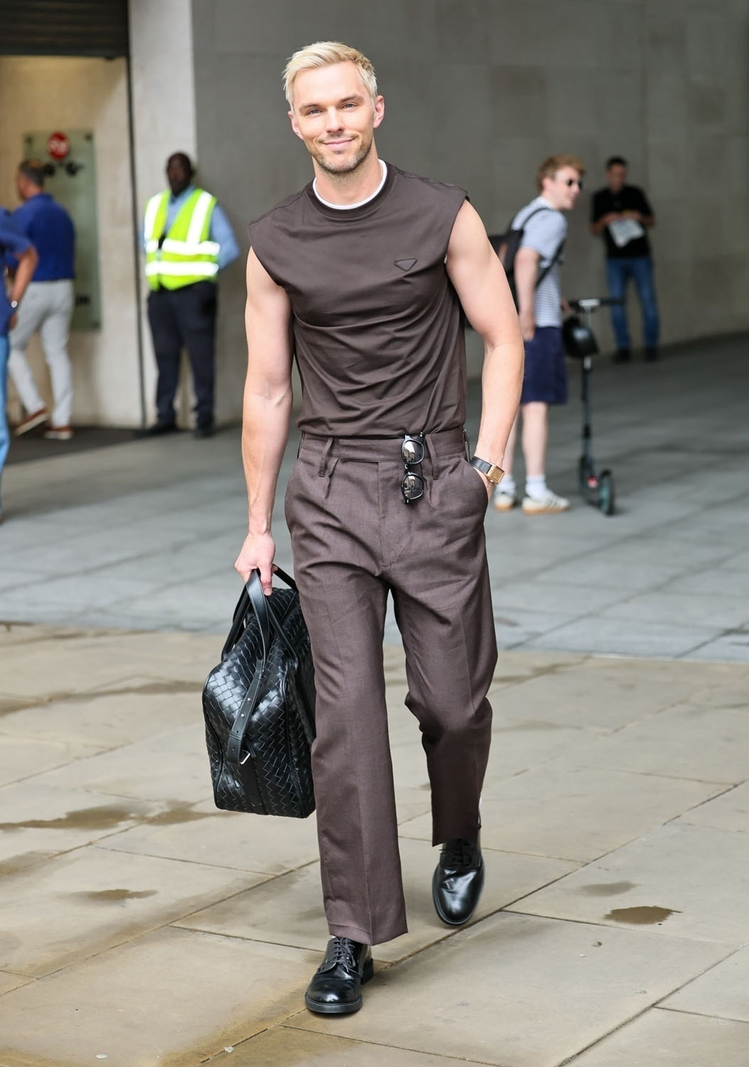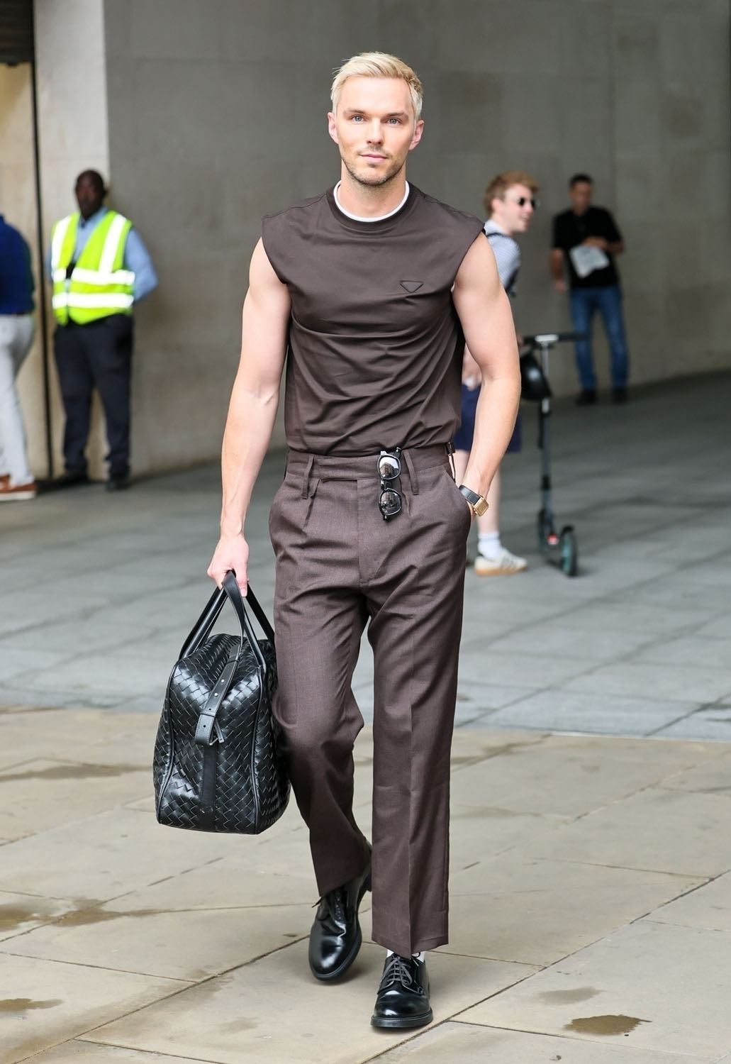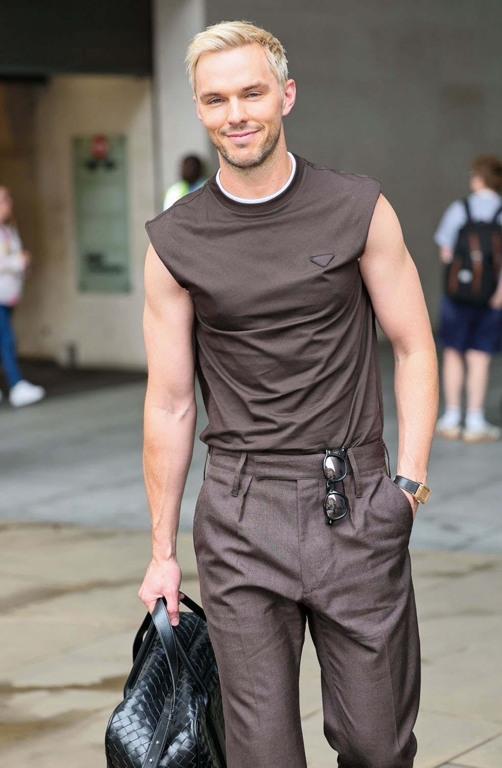 Blonde Nicholas Hoult, though? It’s kinda wrong… but also, like, so wrong that it’s right? I am not OK seeing these new shots of him in brown Prada, with his sleeves rolled up, wearing the sh-t out of those trousers while promoting Superman, in which he plays Lex Luthor. It’s a sh-t disturber press tour outfit. It’s theme dressing, but not so on the nose. This is one of the most highly anticipated movies of the summer, I’ve seen box office projections as high as $180 million for opening weekend. And while Superman aka Clark Kent is obviously the main event, there’s a lot of anticipation for what Nicholas will bring to the table as Lex Luthor, one of the most famous villains in comic book history, even I know that. It’s brilliant casting, and when a villain is effective, he can often steal a movie. Which would be so ironic because of course he auditioned for the hero roles – Batman and Superman – and James Gunn ultimately wanted him for Lex so if he delivers the way people are expecting him to, he’ll be iconic, in a totally different way.