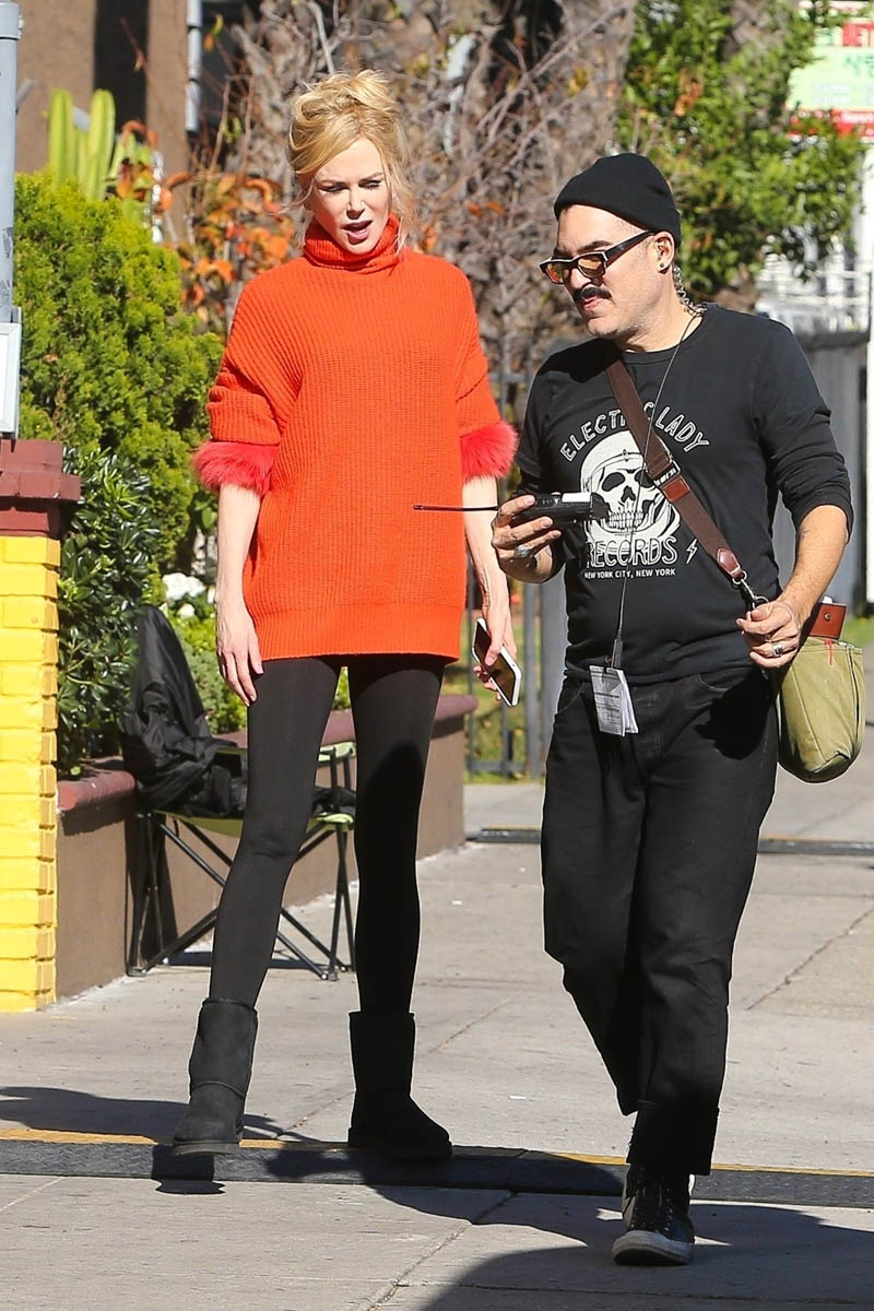 Attached - Margot Robbie at Kimmel yesterday, Nicole Kidman on the set of new project, The Prom, and Charlize Theron and John Lithgow at a Bombshell screening in New York earlier this week.