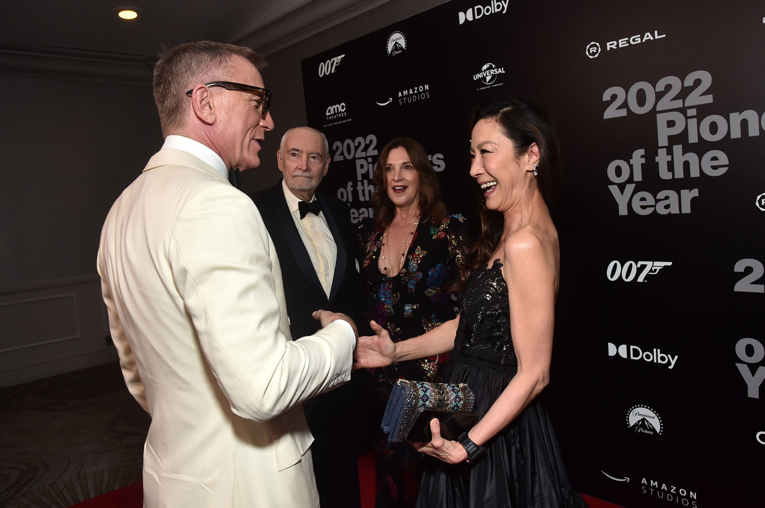 Here’s Michelle last night in Beverly Hills at the Will Rogers Motion Picture Pioneers Foundation Dinner honouring Barbara Broccoli and Michael G Wilson, aka the Bond custodians. Daniel Craig was there too. And you have to think there would have been at least a few Oscar voters in that ballroom so her appearance also served as an early campaign opportunity. And what an excellent way to reinforce the message.