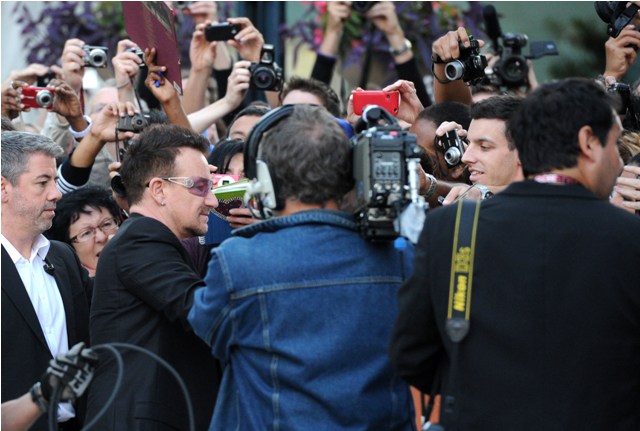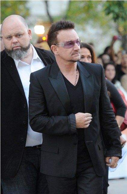 I did not get to interview Bono. Ben Mulroney is the host of our show and he represents our show, always, on opening night. Of course I harassed him on bbm all night for details. And Dylan too. Dylan was shooting. Dylan’s typical first observation was, “He’s short like a girl”. Both however agreed that Bono and the Edge are very, very gracious, very, very polite, aware of their iconic status but not in an arrogant way (think Madonna), just, like, how can you deny it?, and engaging and interested at the same time. They also went to the official after-party which I love so much because a lot of them, especially with names as big as theirs, bail on the “official” events, which often include, literally, thousands of people, for the more exclusive, selective affairs. Not U2.