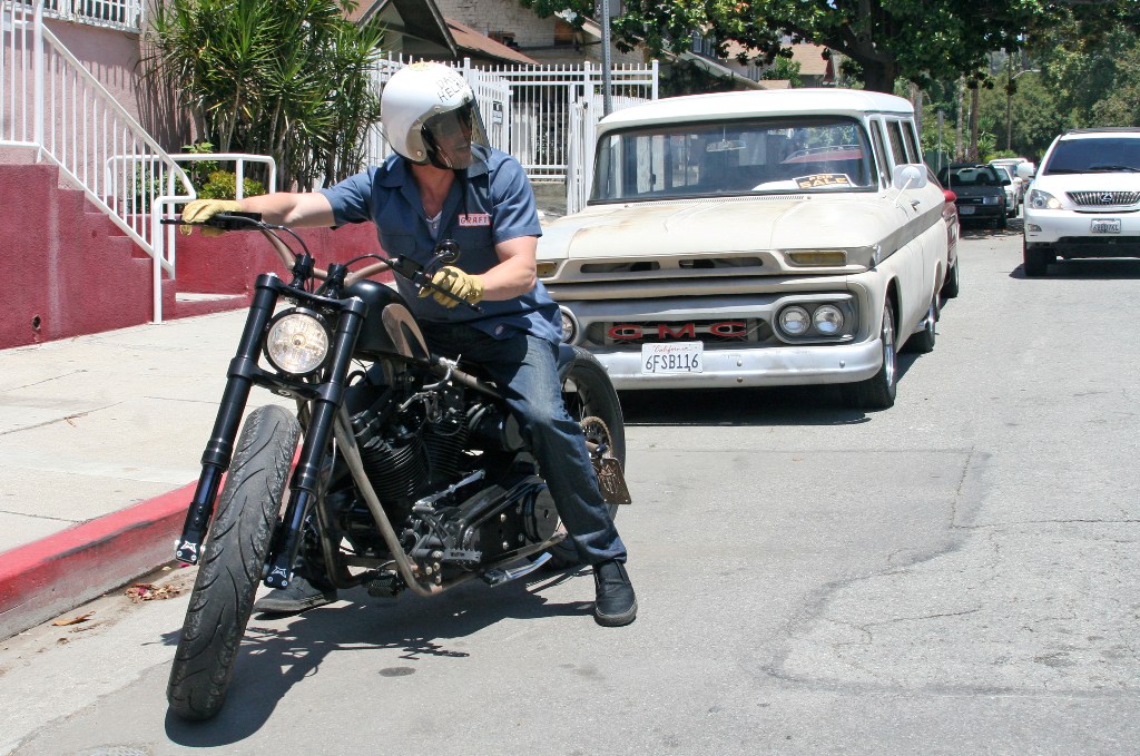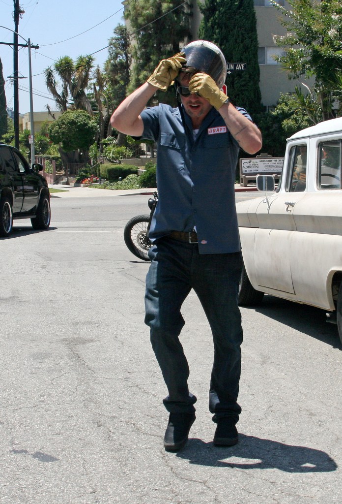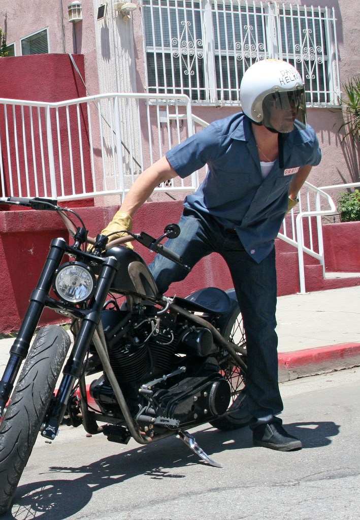 Brad Pitt was riding around today in LA on his bike today. Then it broke down. “Thanks God” the paps were around. He ended up hitching a ride off one of them and they drove off.