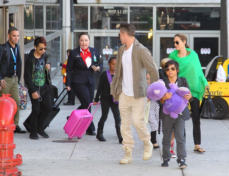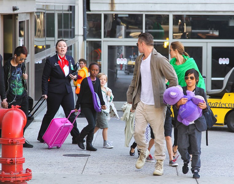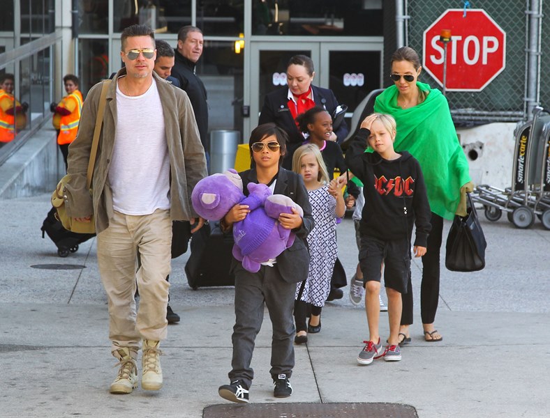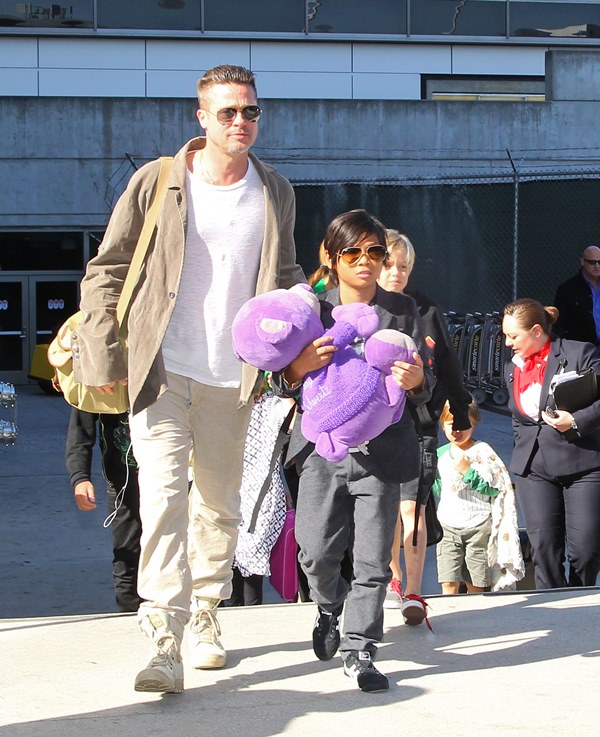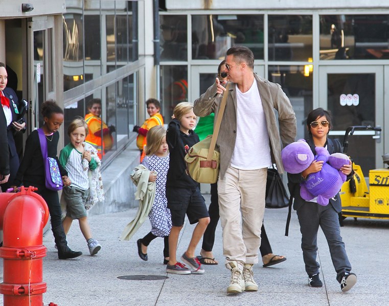 Here they are, all 8 of them, arriving at LAX after spending a couple of months in Australia where the Jolie was directing Unbroken. And we just happen to be inside a month until the Oscars…