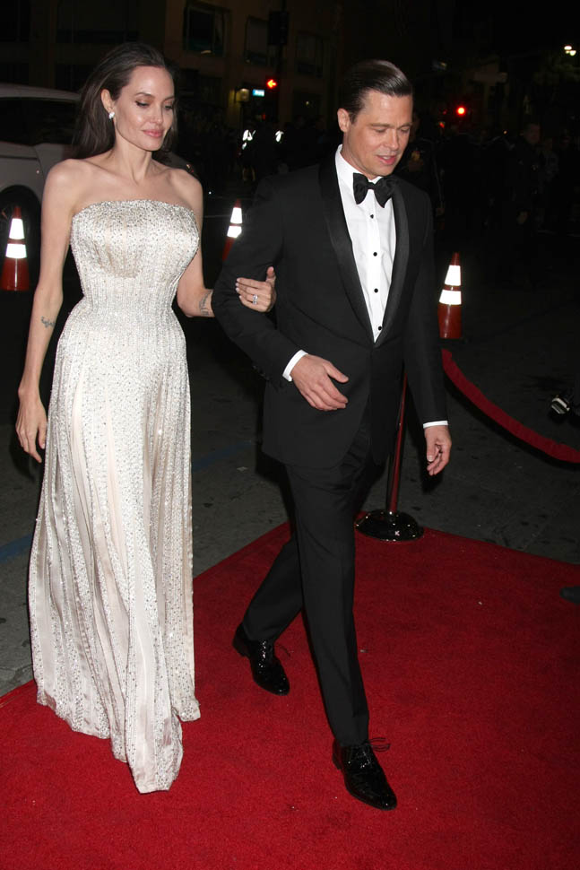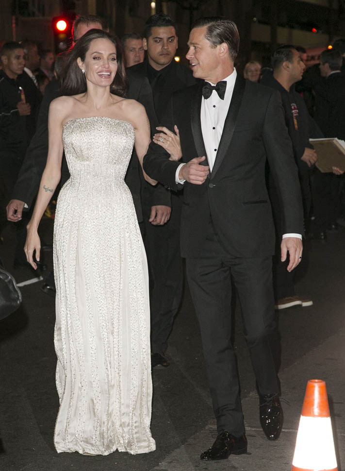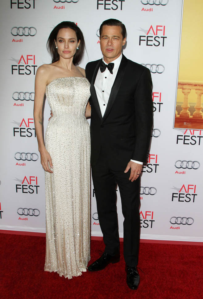 Brange opened AFI Fest last night in LA with By The Sea. She wore champagne Versace. He showed up in a tux. It was full on old Hollywood, and that nostalgic vibe is what they’re trying to evoke in the film too. Ah, yes, the film…