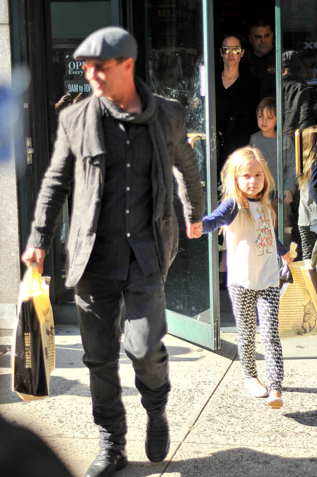 Brange was in New York today. They were photographed at Barnes & Noble shopping with Vivienne and Knox. So on top of everything else that they do, they’re keeping books in business.