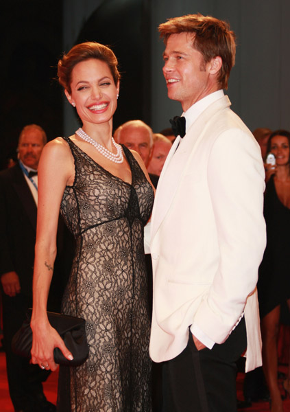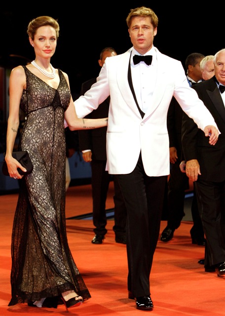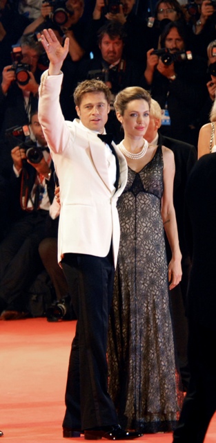 But while her dress and the jewels belong on a geriatric socialite (terrible), their glamour and their star power together is undeniable and unmatched. I’ve seen it first hand…Brad and Angelina command the kind of curiosity and intrigue and fascination and frenzy that cannot be rivalled by any other couple on the planet, no matter how hard the Cruises and the Beckhams try. I remember at Cannes, the press line to get into the press conference for A Mighty Heart was unparalleled. A seasoned and respected reporter, seemingly above the fawning and the obsequious behaviour reserved for the Pitts, arrived just a bit late – unfortunately there was no more room. He pretty much lost his sh-t demanding to be let in and was practically inconsolable afterwards having missed his chance to see them in person. Sorry, I digress.