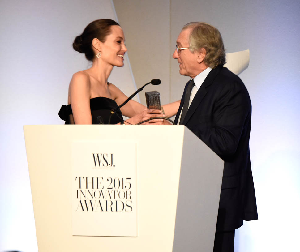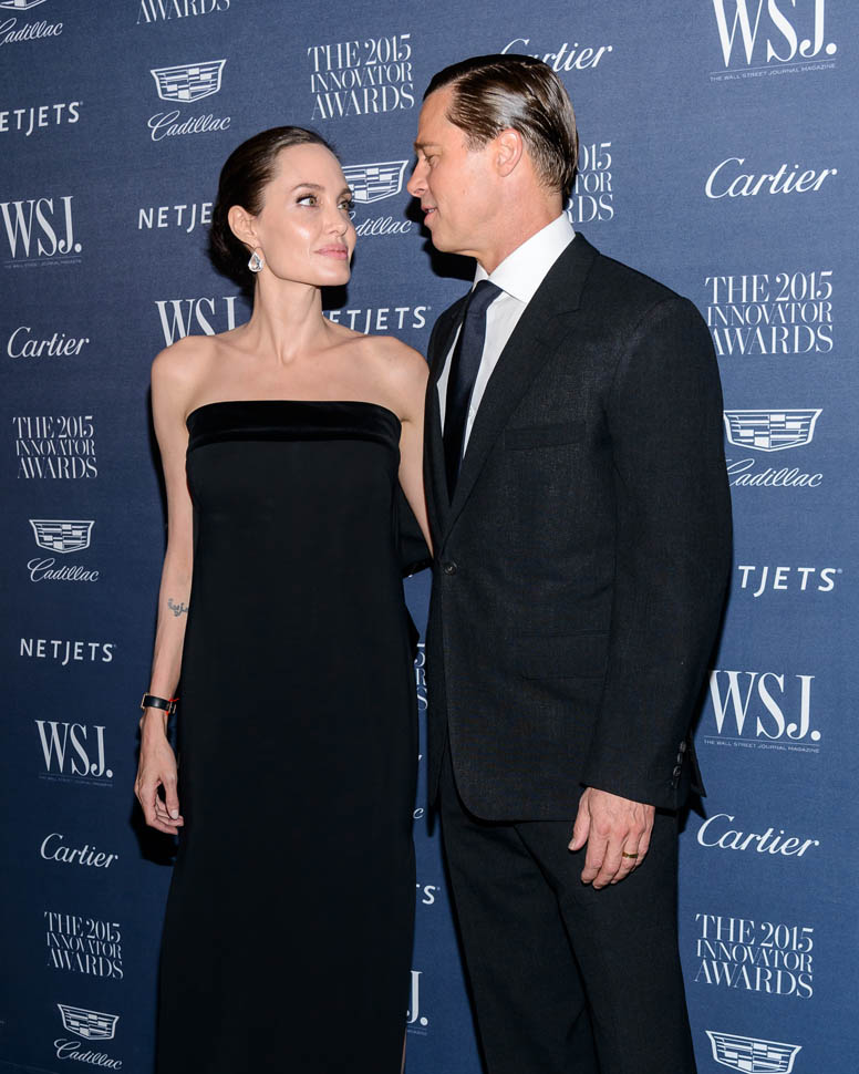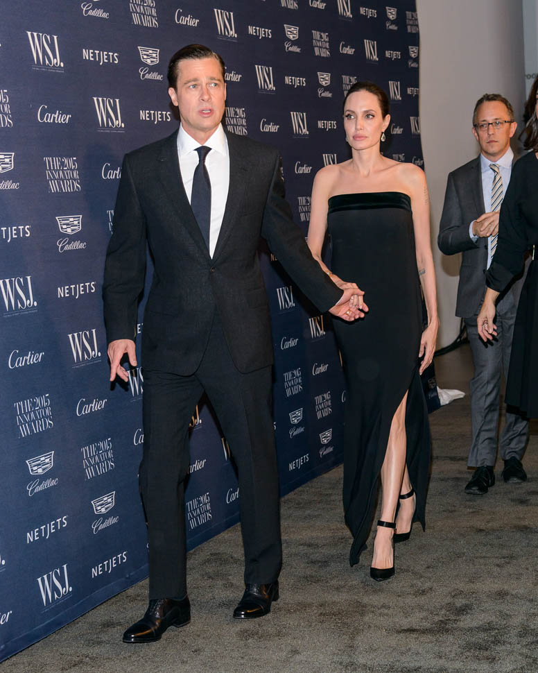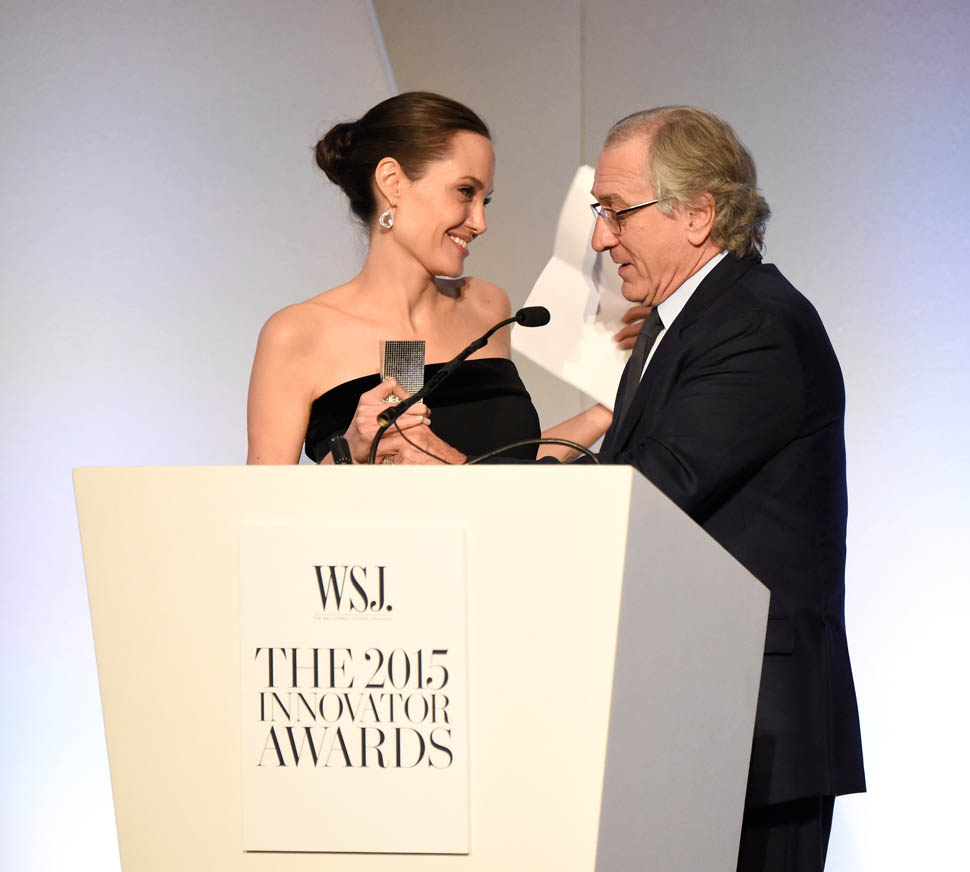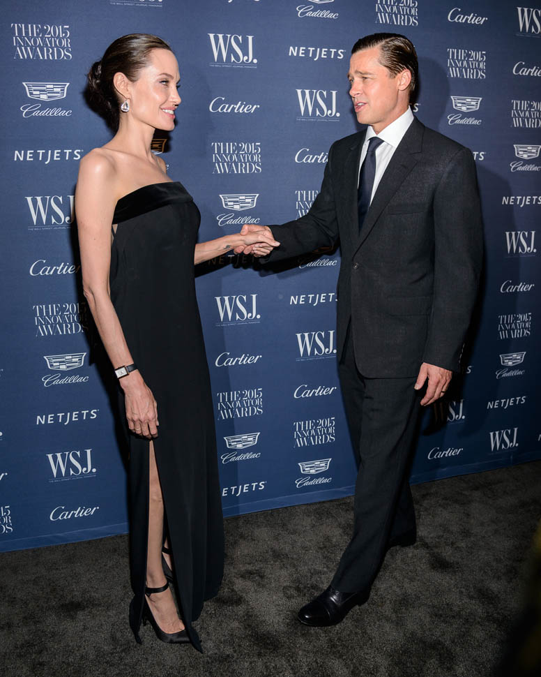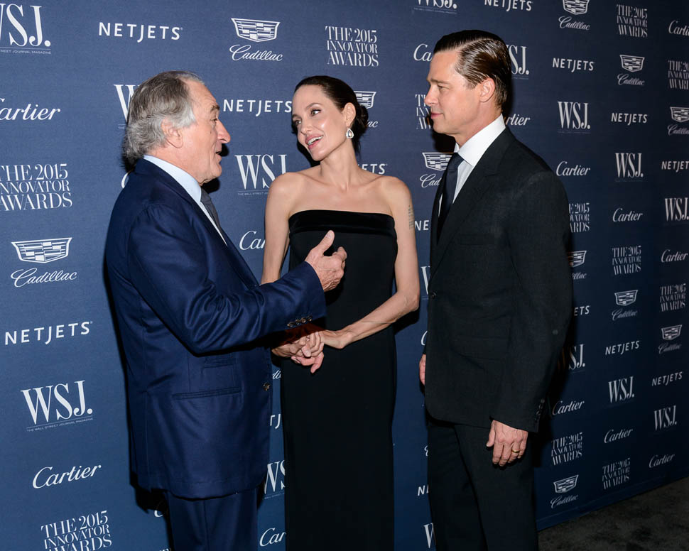 It’s Brange Week! Angelina Jolie was presented with the Wall Street Journal Innovator Award last night in New York. She and Brad Pitt attended the event and hung out with Robert De Niro and Anna Wintour. Tonight, as you know, By The Sea opens AFI Fest so they’ll be back in Hollywood on the carpet once again. Which means that by Friday I’ll have posted about them for five days in a row. That hasn’t happened in a year or more. This makes me happy.