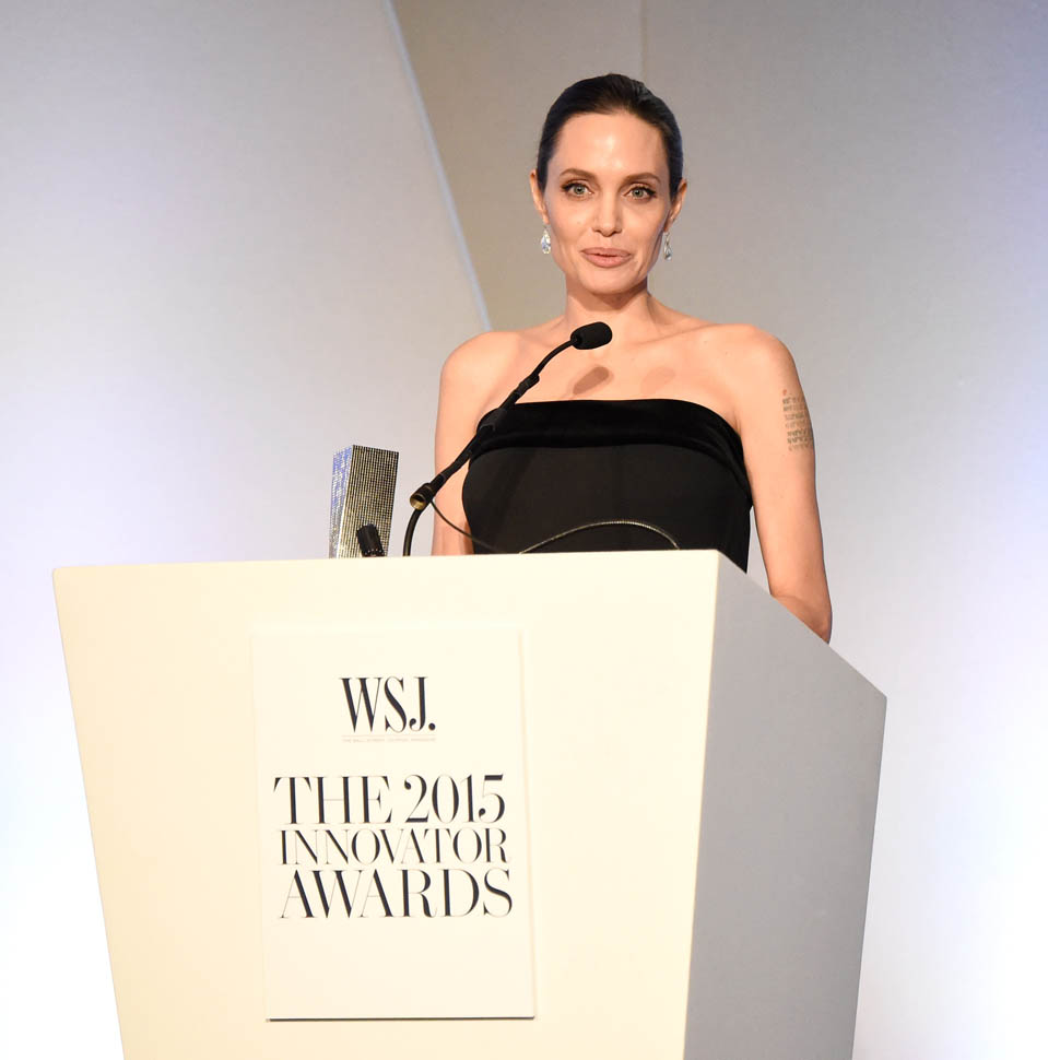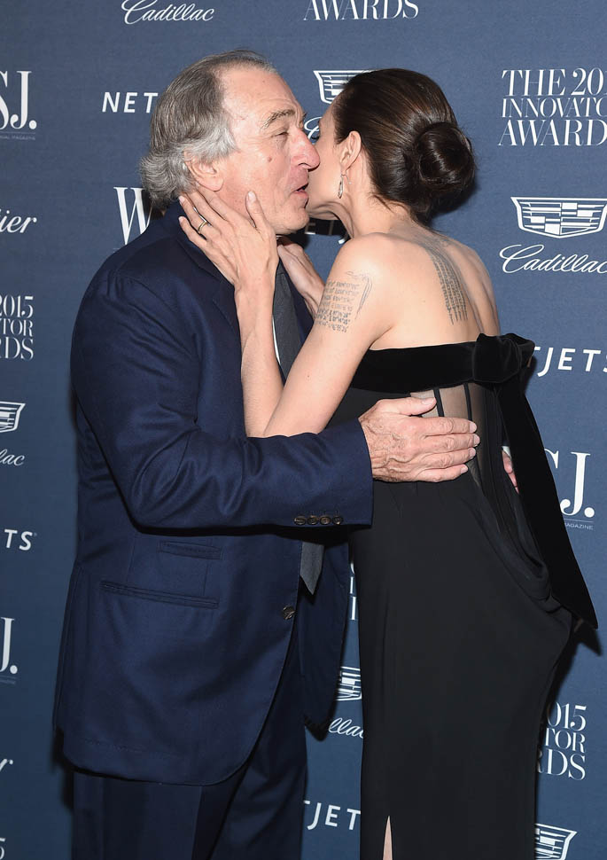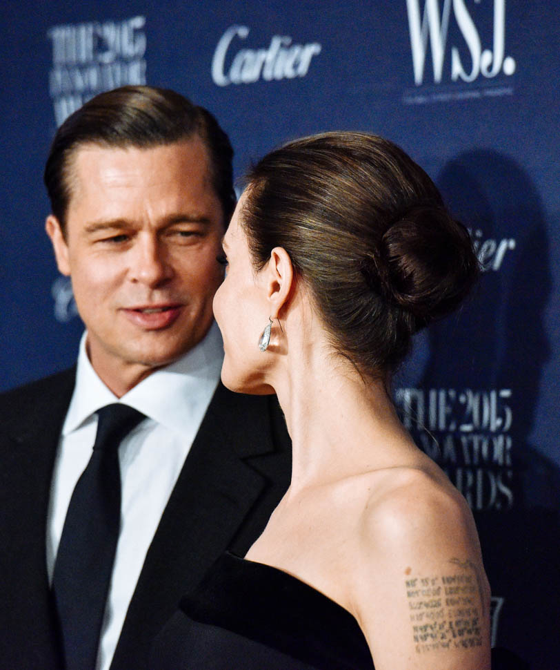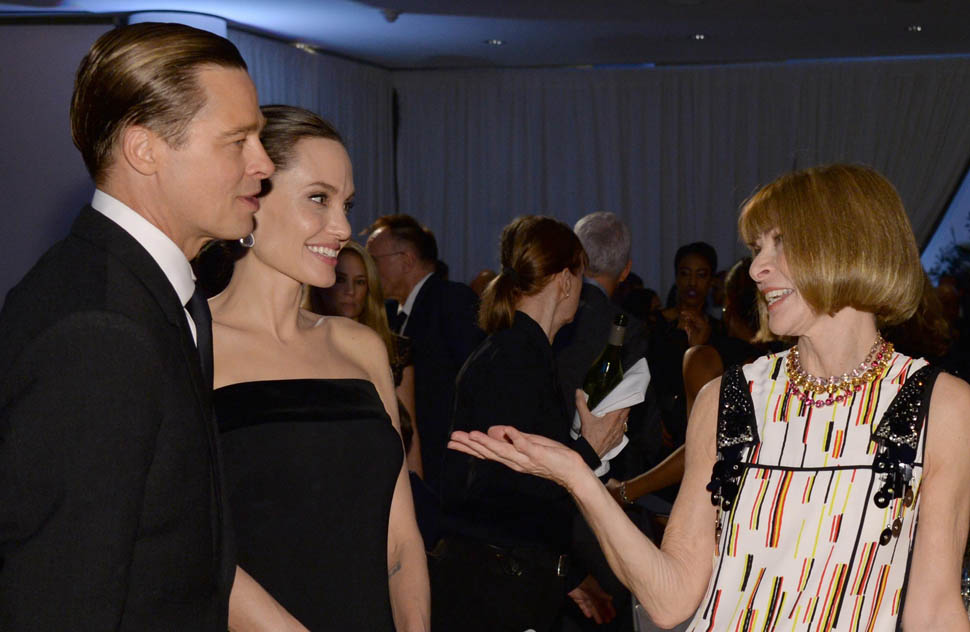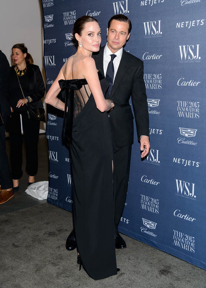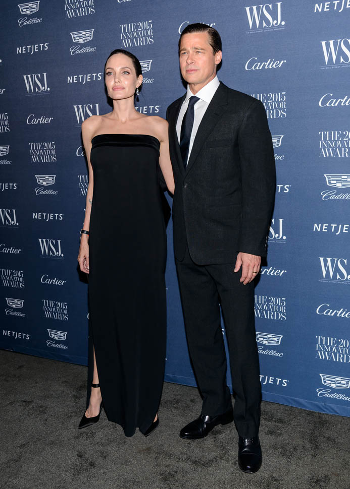 It’s Brange Week! Angelina Jolie was presented with the Wall Street Journal Innovator Award last night in New York. She and Brad Pitt attended the event and hung out with Robert De Niro and Anna Wintour. Tonight, as you know, By The Sea opens AFI Fest so they’ll be back in Hollywood on the carpet once again. Which means that by Friday I’ll have posted about them for five days in a row. That hasn’t happened in a year or more. This makes me happy.