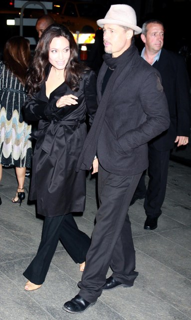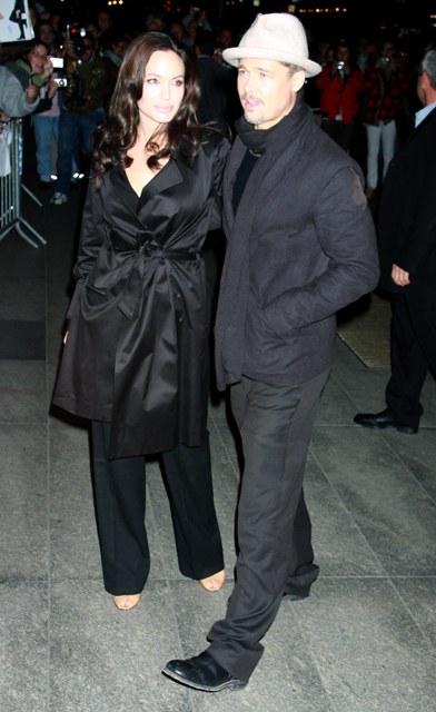 But first, before the premiere, the Brange hit up Nobu for a pre-premiere pit stop. Am told they were already horny porny during dinner. Must have been the sashimi. Angelina ate. My sources say she put down several pieces of sushi, picking them up with her fingers and giggling as Brad teased her, and was crazy about the edamame, sucking every pod while suggestively looking up at Brad – at one point he took her hand and sucked out a bean himself.