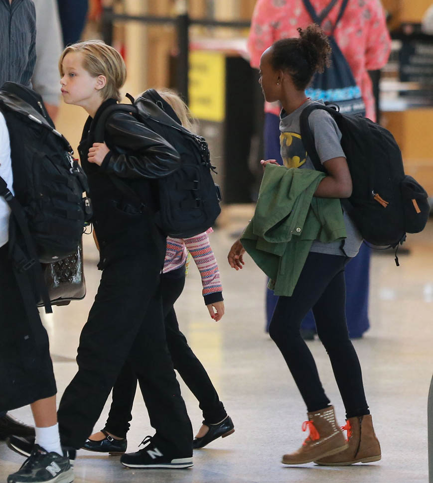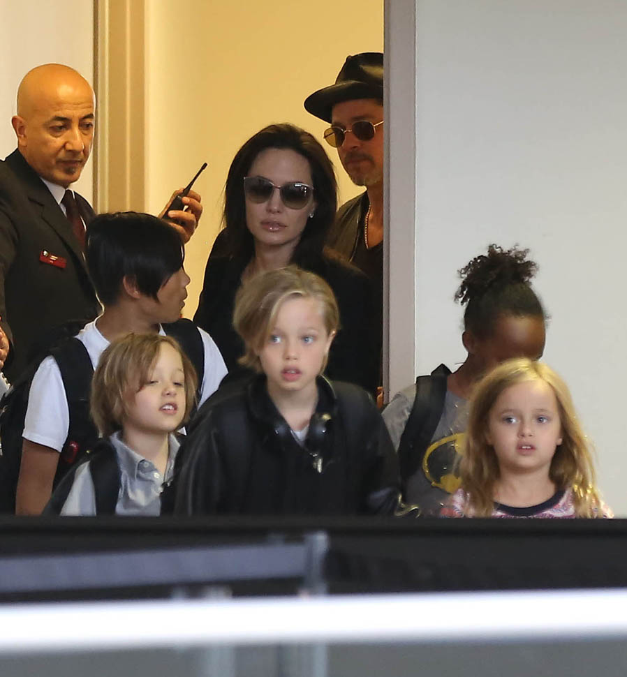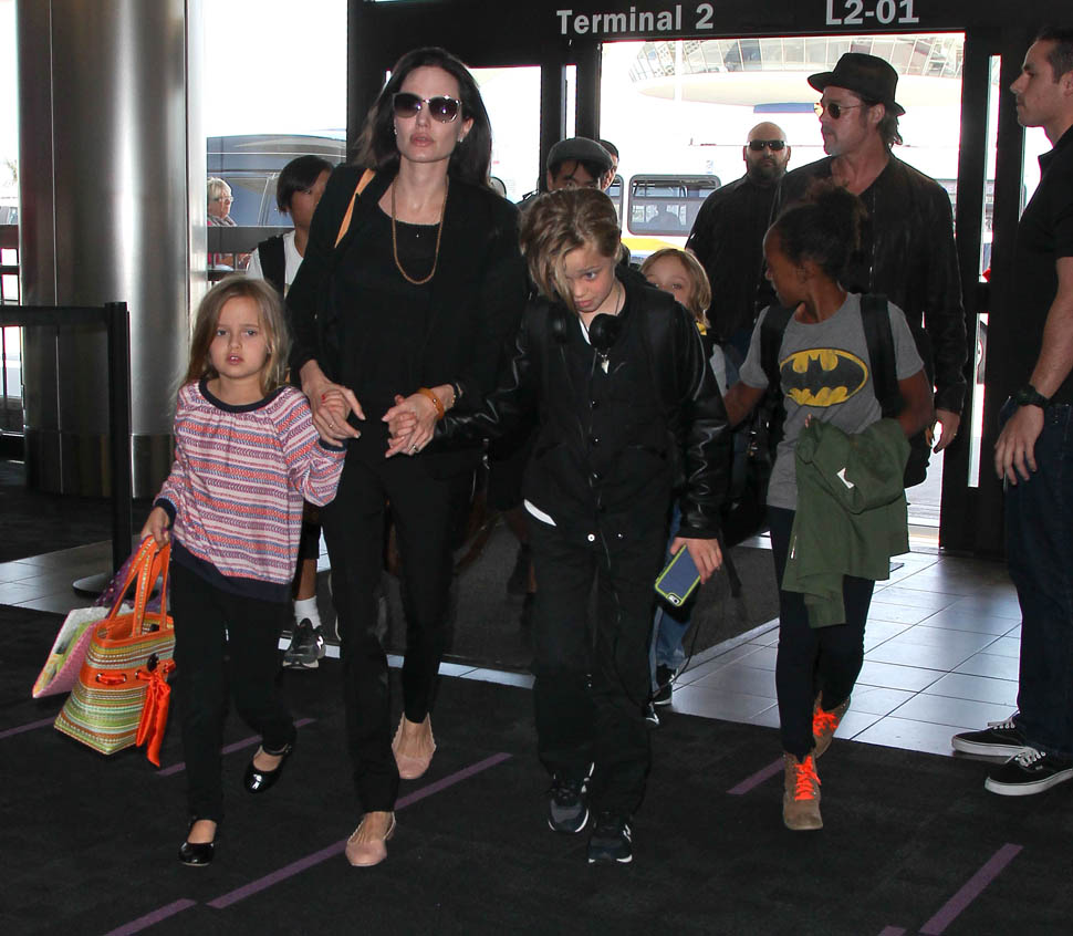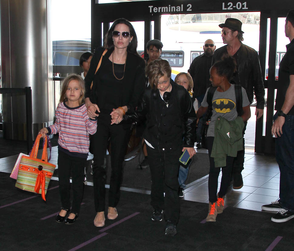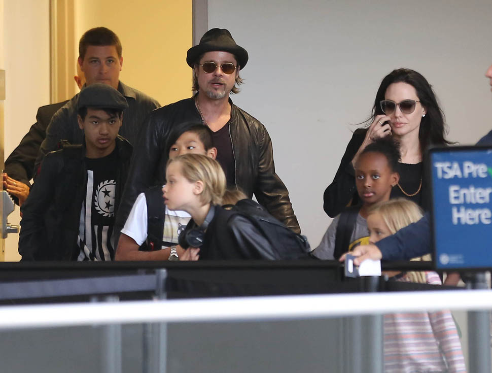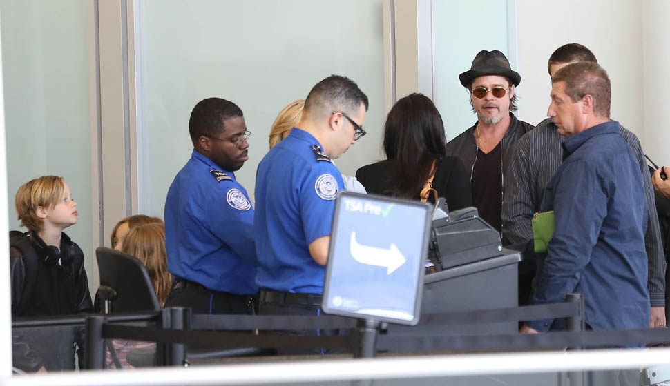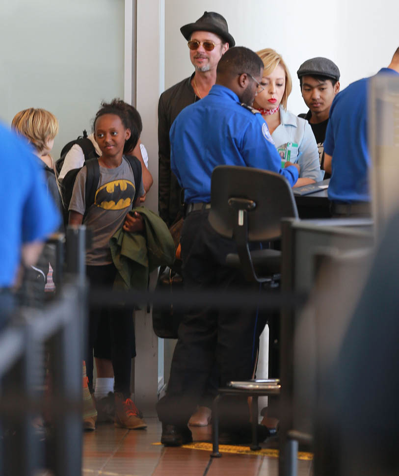 So there’s the Kate Moss way of behaving on a short flight…and then there’s Brange, with all of their children. Angelina Jolie and Brad Pitt flew out of LA on Saturday using the buddy system. Each child had to be attached to another child, except for the two oldest boys who, understandably, are now too cool to hold hands. They flew commercial to Paris. Then, after a two hour layover, flew commercial from Paris to Nice. During the second flight, they sat in coach. Click here to see some shots of them in the economy cabin.