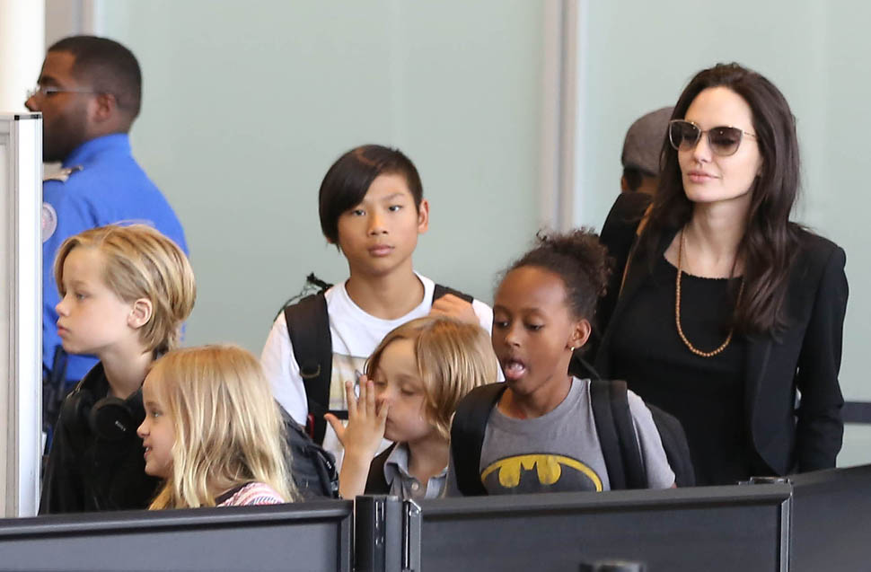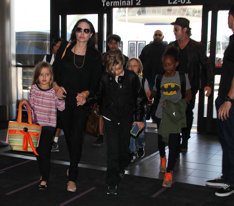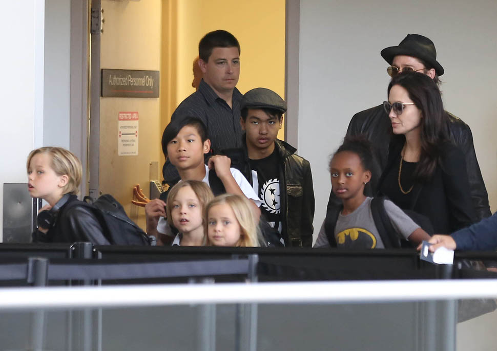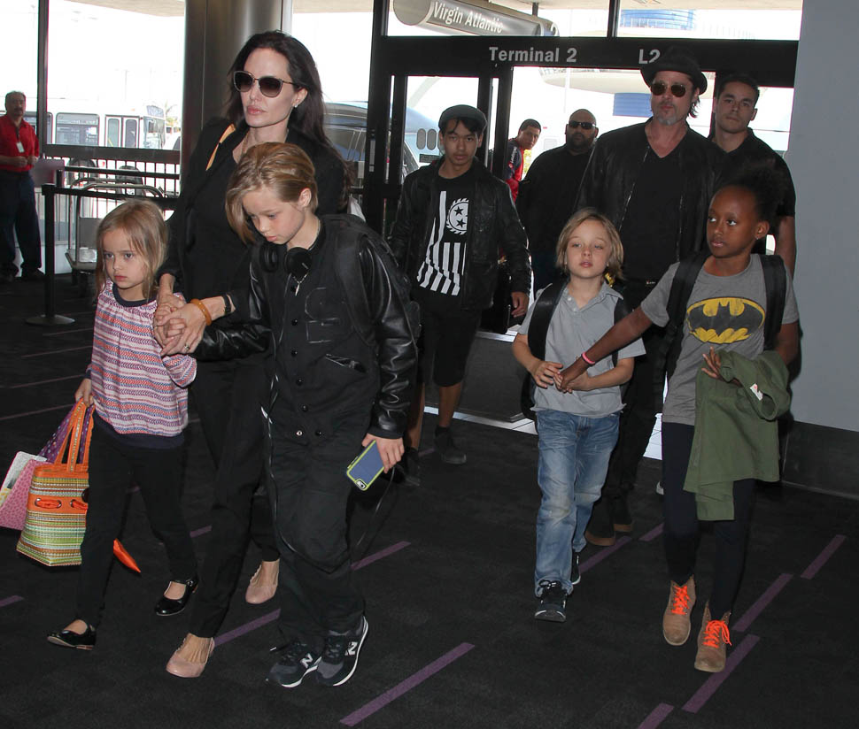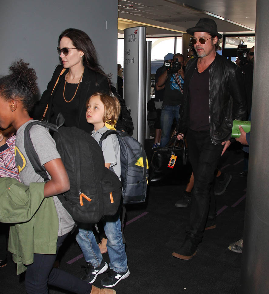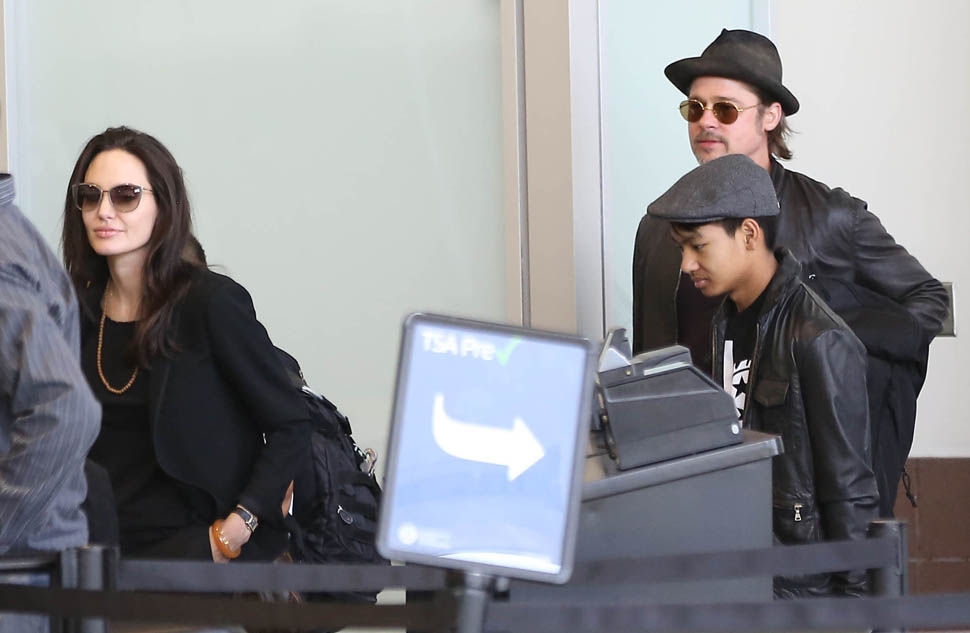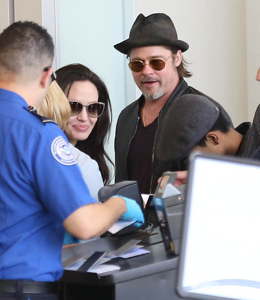So there’s the Kate Moss way of behaving on a short flight…and then there’s Brange, with all of their children. Angelina Jolie and Brad Pitt flew out of LA on Saturday using the buddy system. Each child had to be attached to another child, except for the two oldest boys who, understandably, are now too cool to hold hands. They flew commercial to Paris. Then, after a two hour layover, flew commercial from Paris to Nice. During the second flight, they sat in coach. Click here to see some shots of them in the economy cabin.