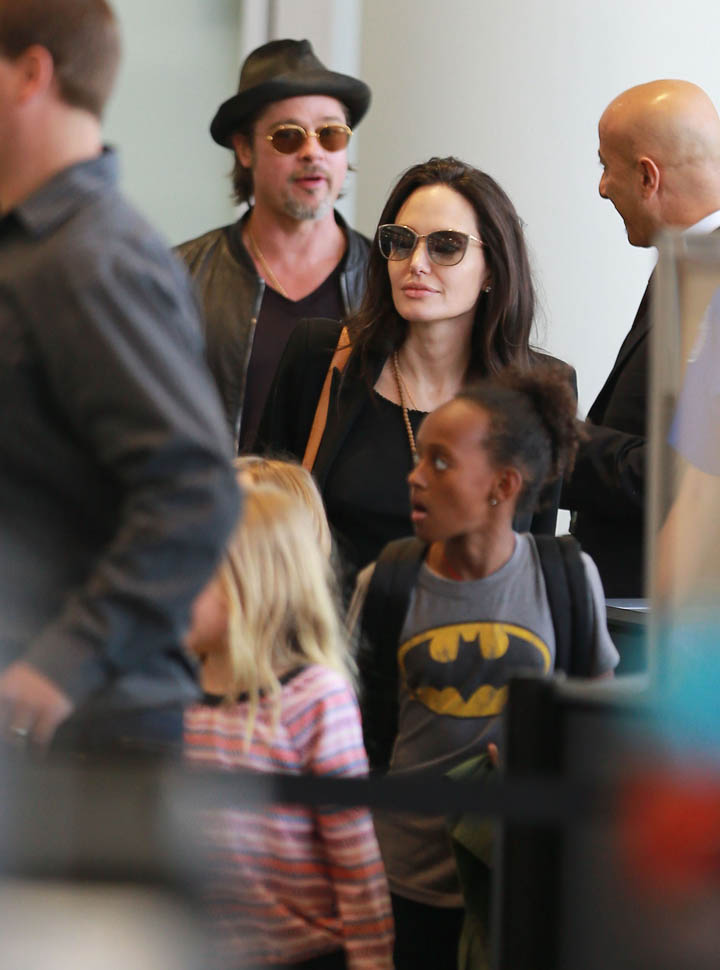 And this is newsworthy because, as we’ve seen, and often, the Brange has been known to fly private jet. Maybe the plane that they normally charter wasn’t available. Maybe, ha!, they were trying to save money. Maybe they thought it would just be easier to fly first class on the long leg of the trip and suck it up for the short haul – it’s no time from Paris to Nice (and besides, on these smaller planes, they often don’t even have a first class section). Maybe Angelina wants you to see that she can do that. Because as we’ve learned from her over the years, she always knows exactly what’s going on and how you’ll react to it. In this case positively. No reports of kids running up and down the aisles screaming. Angelina did not have to change costumes 3 times during the flight. (I’m looking at you, Victoria Beckham.) No fighting among siblings over who gets to play on the iPad, or the DS, probably because they all have one. No one calling anyone else a “basic bitch”. But sh-t, I would love to hear those words come out of Angelina Jolie’s mouth, wouldn’t you? Or Miss Zahara.