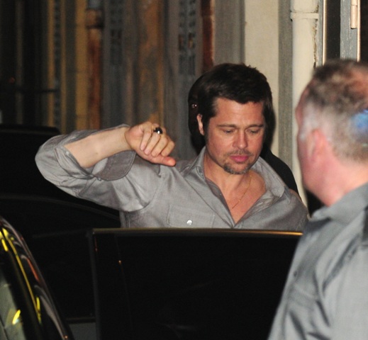 After a visit to The Hague, the Jolie arrived in Cannes yesterday to join Brad for dinner with the Inglourious Basterds team debunking yet again tabloid reports of a split or a meltdown. My sources say it’ll be a quick trip for Angelina. She’s taken 2 days off shooting, will join Brad on the carpet tonight, then goes back to New York to resume work while he stays here for press Thursday and Friday before returning home for1 the weekend.