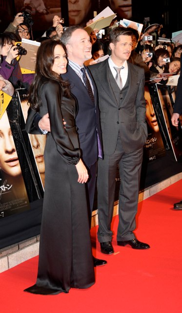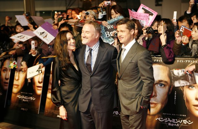 It’s the Brange on the red carpet in Tokyo for the Benjamin Button premiere electrifying the Hello Kitties, continuing to work it, work it, work it. As mentioned earlier, Slumdog is under attack. And Brad’s film is not. The Los Angeles Times after the SAGs on Sunday even remarked on his increased enthusiasm for promotion of late: