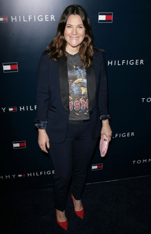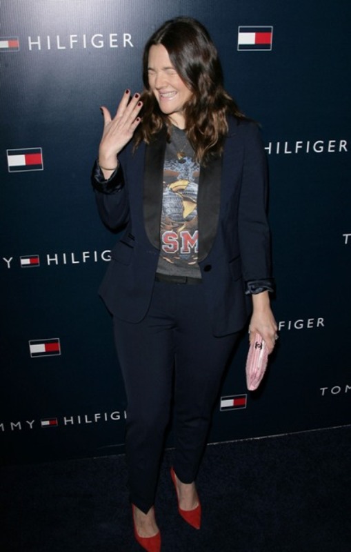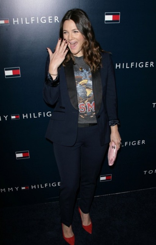 Here’s Drew last night at the Tommy Hilfiger (really?!) store opening last night. Not feeling the lipstick but love what she’s wearing.