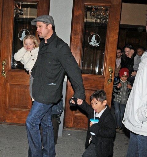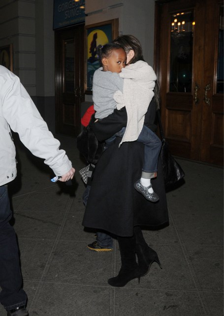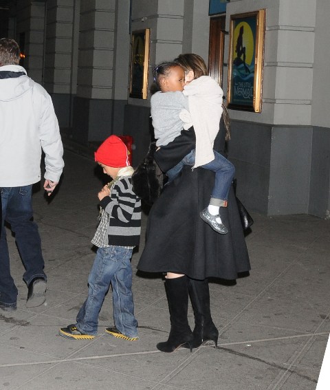 Here she is – Shiloh Jolie Pitt with her siblings Pax, Maddox, and Miss Zahara, along with her parents, going to see the Little Mermaid last night. The First Family has taken up residence in New York while Angelina shoots Salt. Brad is expected in Cannes for Inglourious Basterds so presumably they’ll jet back to Nice in time for the festival where for the third – or will it be the fourth? – year in the row we’ll see them sur les marches.