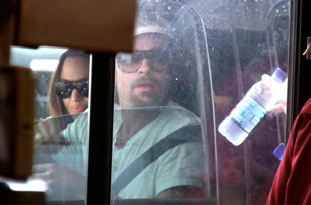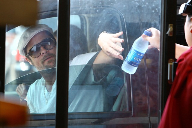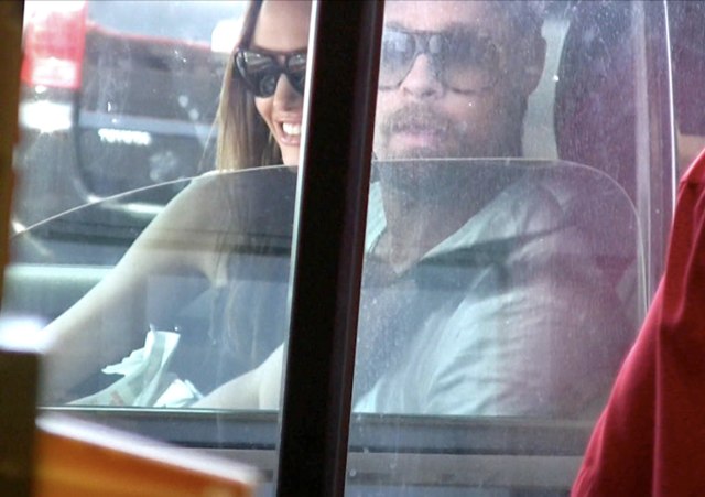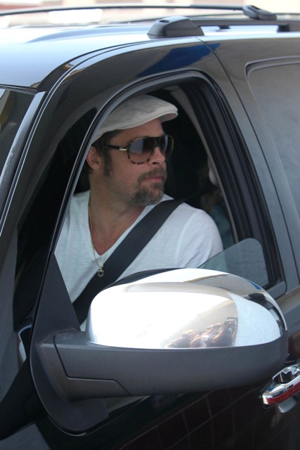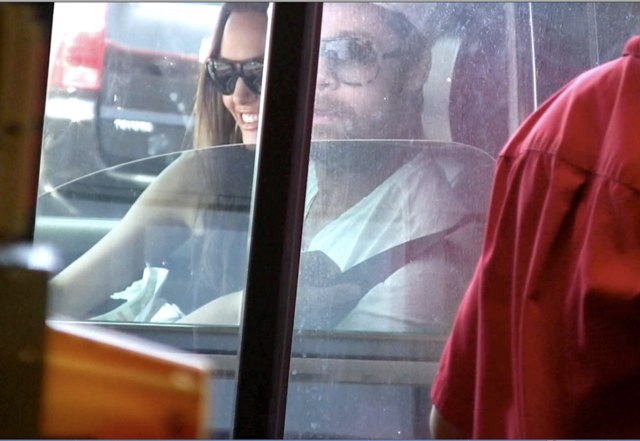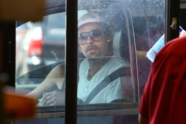 Another weekend, another trip to McDonald’s. Angelina is smiling broadly, Brad’s focused on the ordering, there’s a glimpse of the Chosen One in the back seat, and a phantom reflection of one of the Holy Twins too. Wearing a cap, probably Knox?