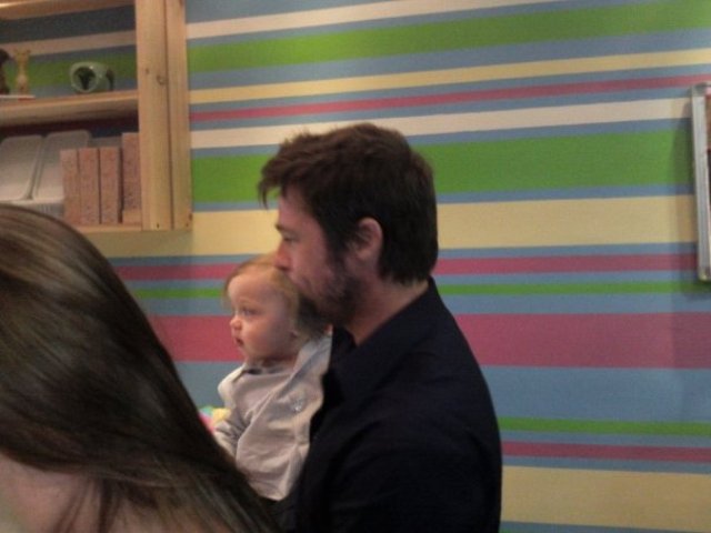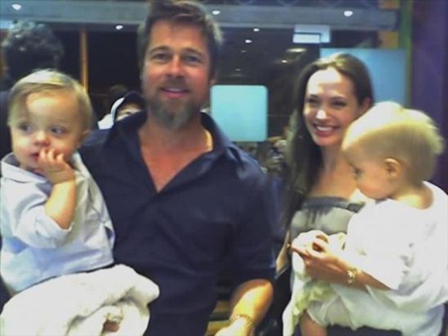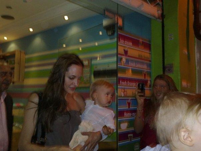 Here are the Brange with Knox and Vivs in Jordan on an ice cream outing that was captured by a fan and posted on Twitter and then quickly disseminated around the world at which point the entire planet, with the exception of the Twi-Hards, who cannot be torn away from their televisions on the weekends because this is when they can watch the Twilight DVD on repeat loop without interruption, stopped to marvel at the Twin Perfection.