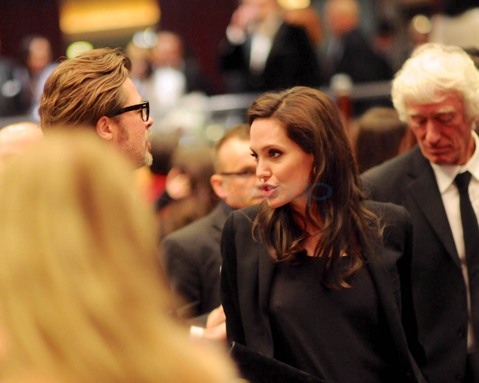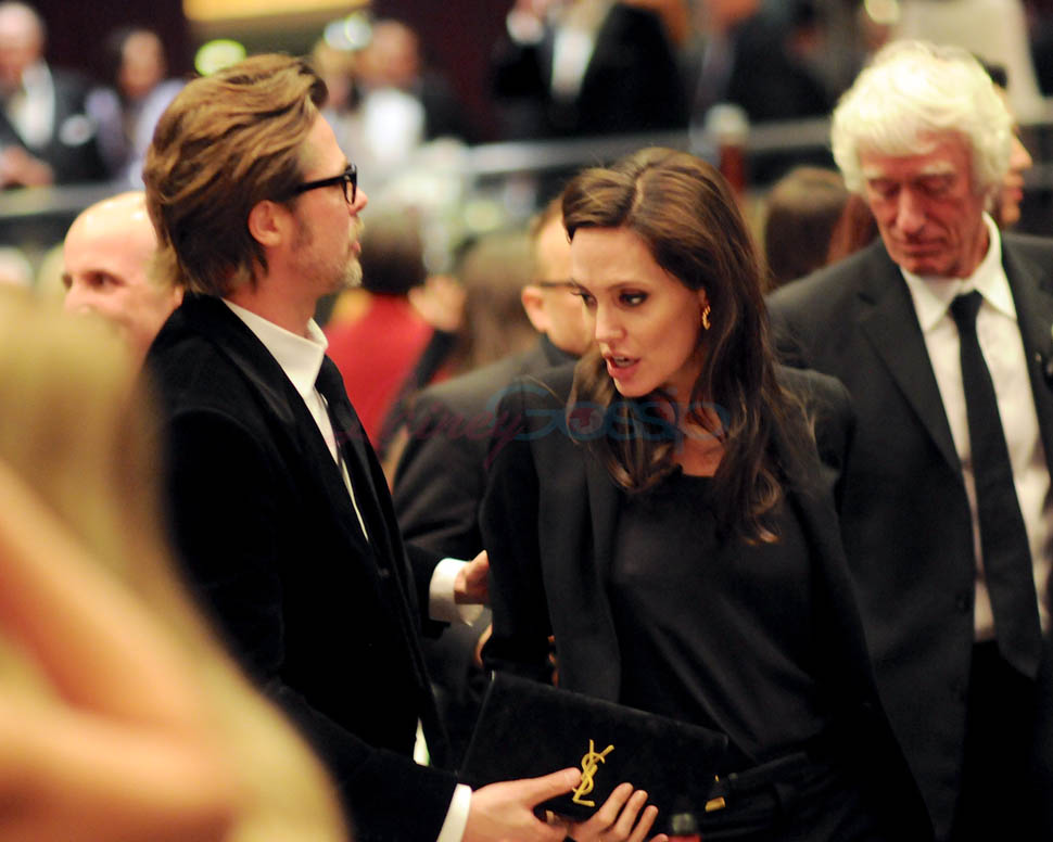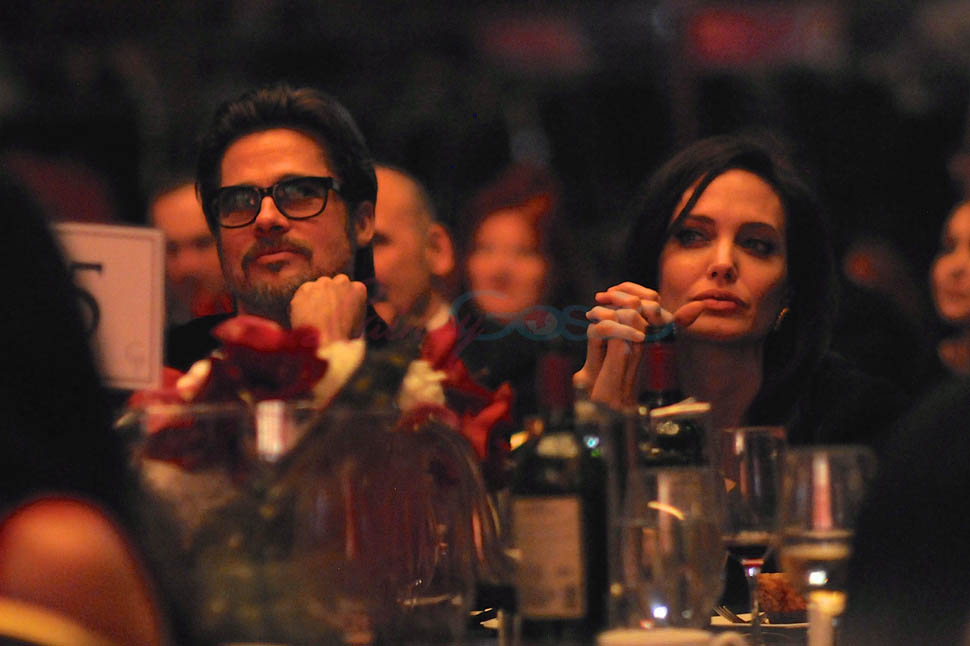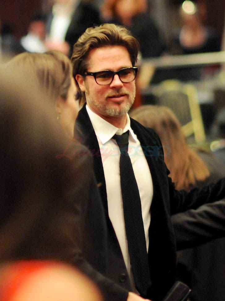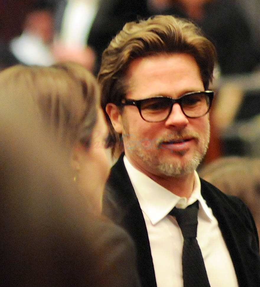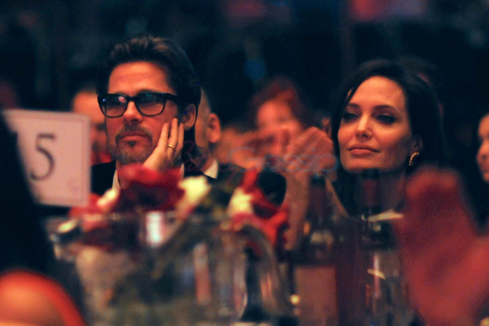 Last night. At the American Society of Cinematographers’ Outstanding Achievement Awards. Brange was there to support Roger Deakins who worked on Unbroken. Not really an event where you’d see big photo-sellable stars. So we don’t have a lot of shots of them. Only these, taken from inside the event at the table, or moving around their table. But they’re good enough so that we can see the hair game. And it’s the best coordinated hair game they’ve shown us in a while.