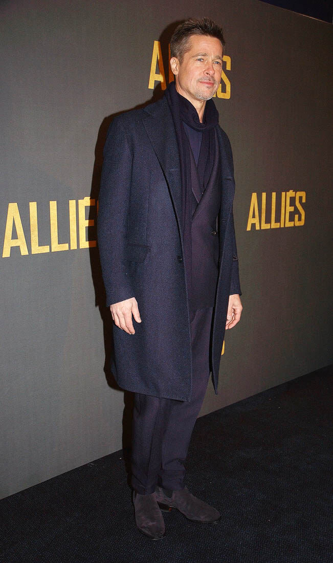 Last week, Brad Pitt promoted Allied in China, leaving Marion Cotillard to sell the film in the US and answer all the questions. This weekend they were both in Paris for the French premiere, where they spent time with fans and posed for pictures, safely protected from reporters. But what about critics? Allied opens on Wednesday and the reviews are now being posted. So far it’s been pretty mixed. The Telegraph gave it 4 stars, calling it a “swanky, sexy spy thriller” while the Guardian gave it only 2 stars, comparing the chemistry between Brad and Marion to “a cold wet teabag falling out of a mug that you have upended over the kitchen sink and don’t much feel like washing up”. Variety’s Owen Gleiberman appreciated Allied’s old-timeyness and said it felt like Steven Spielberg’s Bridge Of Spies but this is exactly what the Village Voice complained about in their review, describing Allied as “the kind of film you can send your parents or grandparents to the next time they complain that they don't make 'em like they used to”. My quick conclusion from these varying opinions: the MiniVan Majority will love this movie. They have their Brad back, now that he’s rid of the evil seductress. And he’s trying hard to look as good as he did in the Peak Brad days, circa 2002-ish? What are the chances we get some brand new Angelina photos just as Allied hits theatres?