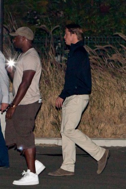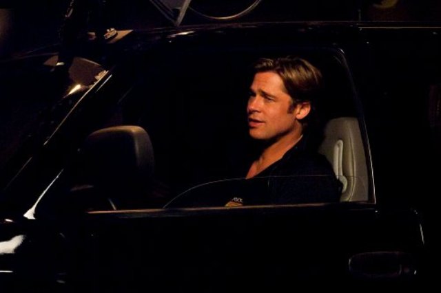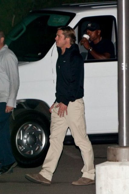 This is Brad Pitt shooting Moneyball last night with Robin Wright. It looks nice, non? Soft on his face, good tone. Dylan, a good friend of mine who shoots for etalk, bought a new camera a few months ago and loved taking pictures in Cannes on the street at night under lamplight. He said it was super flattering. And they were. What? Brad Pitt doesn’t care about this? Oh he probably cares about it more than anyone else.