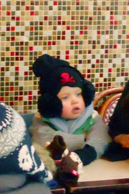 As you can see, The Chosen One is addressing her subjects while rocking a skull toque with matching earmuffs. That’s pretty cute. Not to be outdone, her sister Miss Zahara is showing off a white version, and (kiddie photo assumption!) some signature Z impatience with open-mouth boredom while her mother keeps droning on about saving babies in Africa. What about the toys?!?! Miss Zahara owns me.
