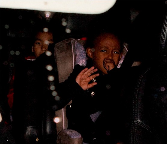 They went from Africa to Missouri – click here for a refresher - for the holiday, and are now back in LA. Check out the Brange leaving Benihana Japanese last night with some of their kids. Not that this is germane in any way but… I don’t order Bento Boxes. The best rolls never come with Bento Boxes. And WHY would you go to a sushi restaurant to eat the chicken they invariably shove into one of the compartments with some bean sprouts and noodles? That’s just dumb.