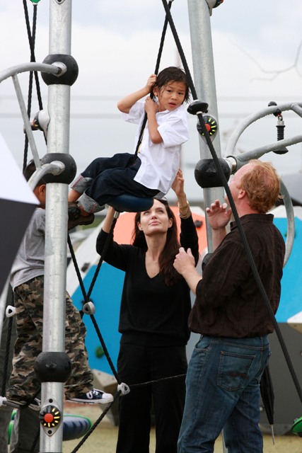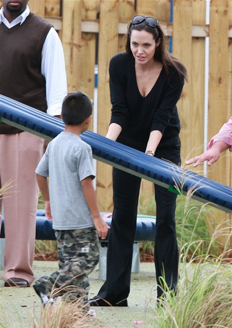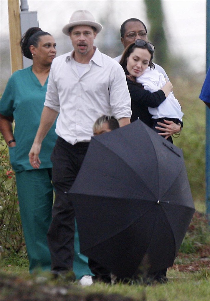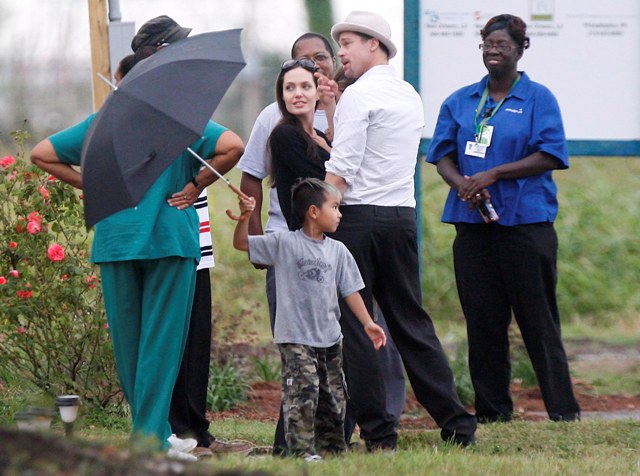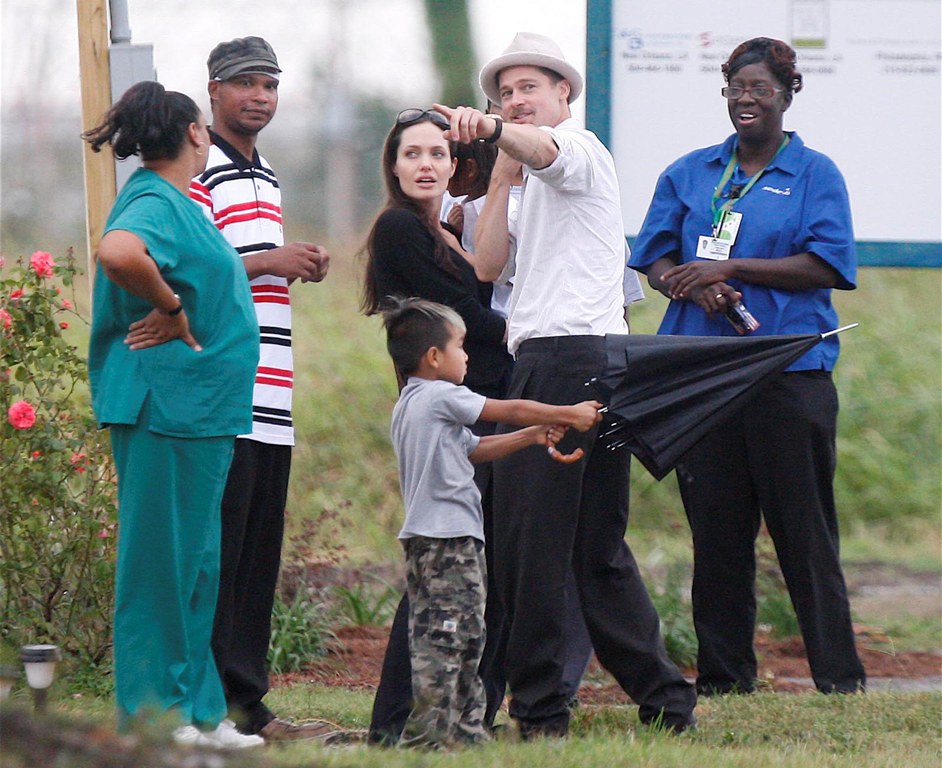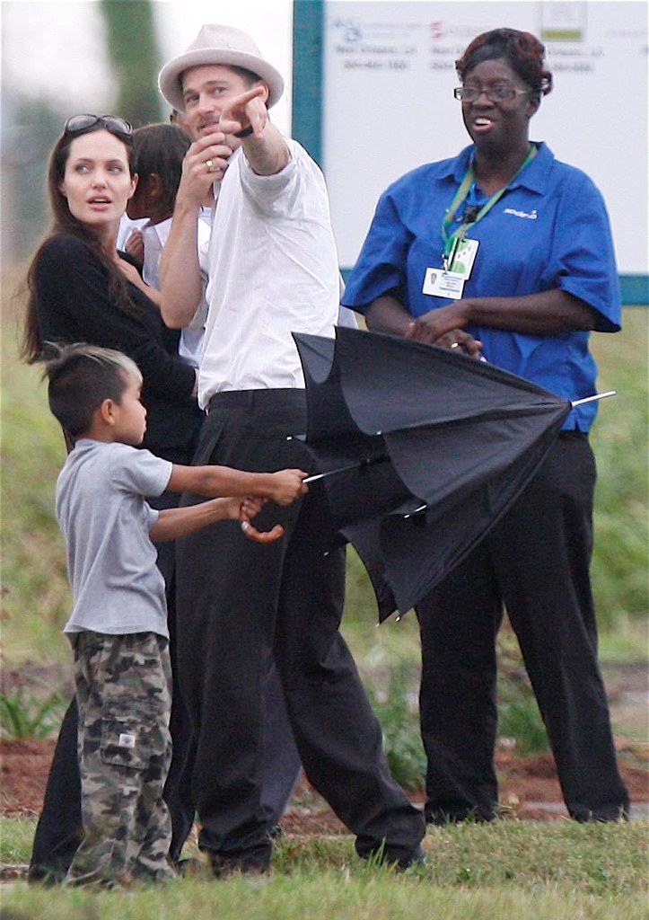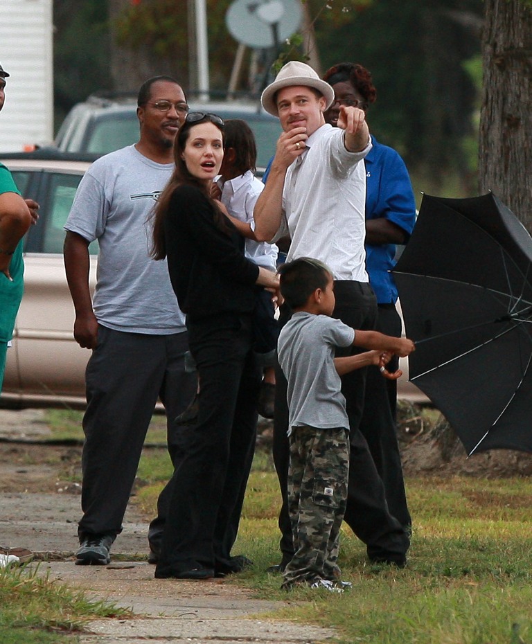 As you know, Brad and Angelina and the babies are all in New Orleans. Brad’s Make it Right initiative to revitalise the Ninth Ward has reached its fundraising target and the Brange brought Maddox and Pax along on a site visit yesterday, chatting with locals with their arms wrapped around each other, giving photographers nearby some money shots that have now sold the world over, thereby announcing the solid state of their relationship AND promoting Brad’s philanthropic efforts in New Orleans.