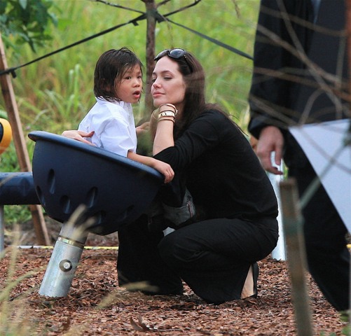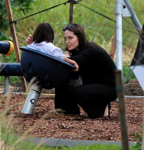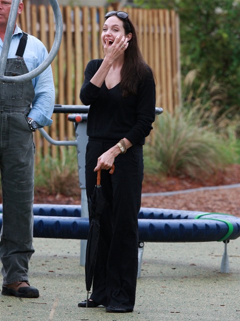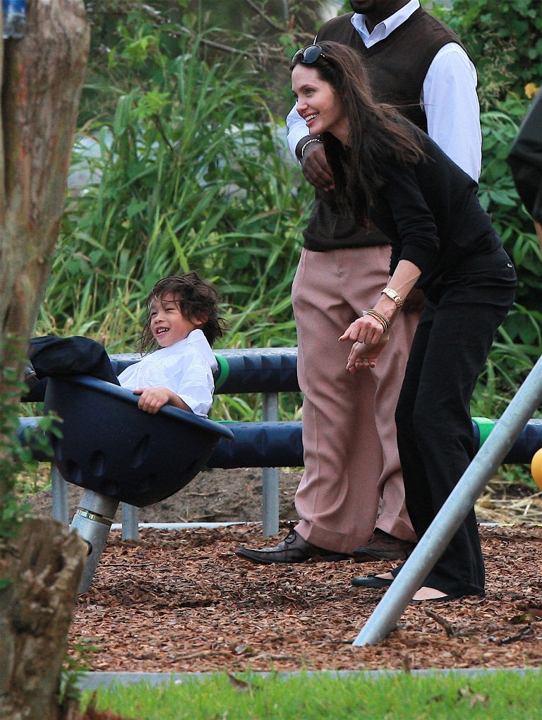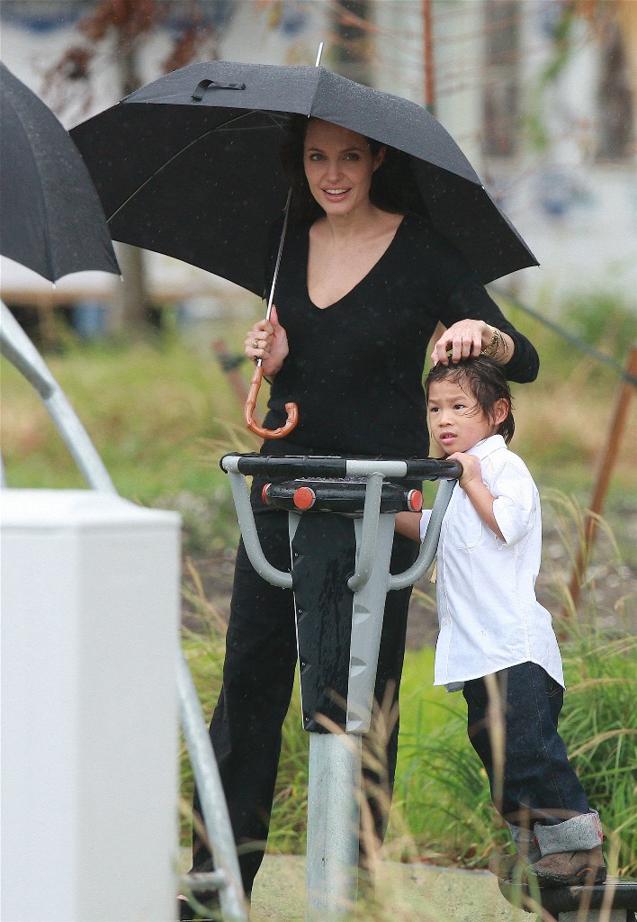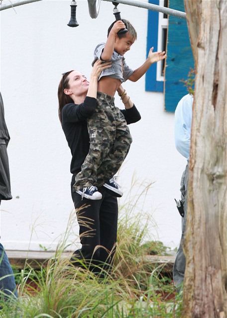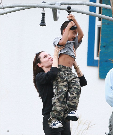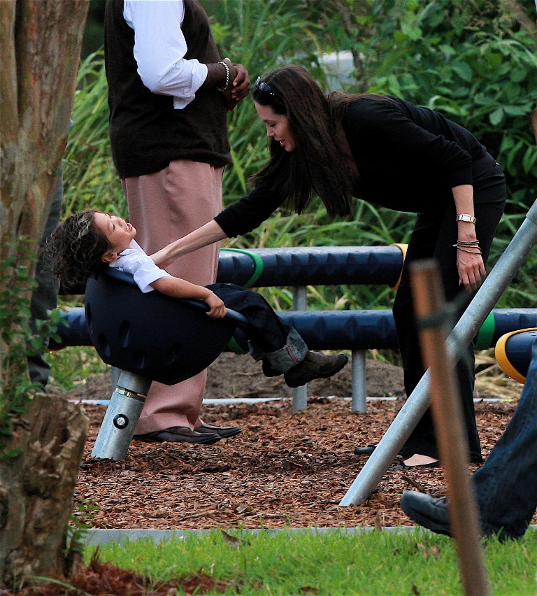 Check out Angelina doting on her boys and her boys adoring her back. Word from those who’ve met them in New Orleans is that theyseem like “just a regular family” (snort) and that mom’s actually the soft one. That it’s Brad who’s the disciplinarian and was overheard shutting down some mischief between his boys with a stern “Eh! Cut it out!” the other day when they were getting out of the car.