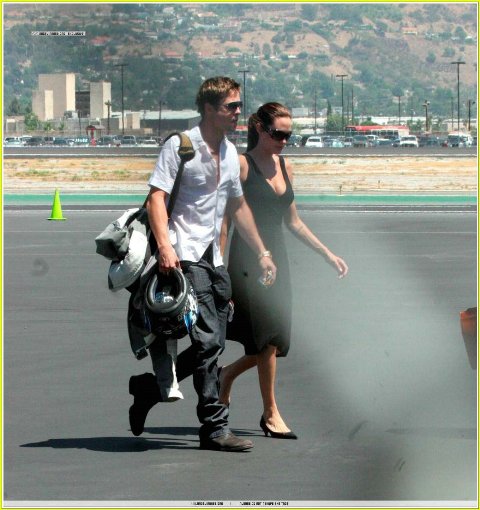 Just in case you missed it, I posted more from the gallery sighting over the weekend, thanks to our eyewitness who was lucky enough to hobnob with the stars that evening. Click here to read if you haven’t – and even if you don’t care for the Pitts, you might enjoy some of the juicy little bits about the other celebrities in attendance, particularly Bruce Willis. That one killed me. As for the break up rumours – funnily enough, would you believe they’ve been silenced? Especially on the heels of yet another display of togetherness? See Brad dropping off his Angie at flying lessons Friday and Saturday per JustJared, a rather loud and pointed F*CK YOU to Life & Style Weekly, coincidence perhaps for the “Brangelina-addicts”, contrivance obviously in my books, but proof all the same that the Pitts have their own agenda completely under their own control, no leaks, no cracks…and certainly not in the hands of a bottom feeding rag that changes its tune from week to week.