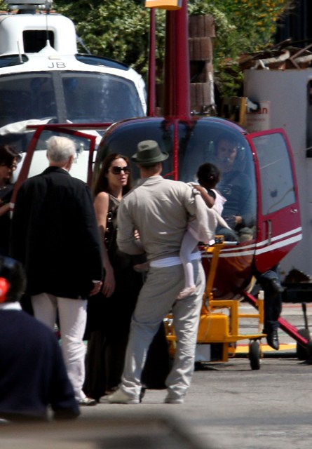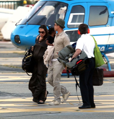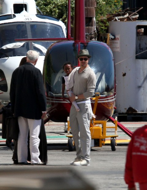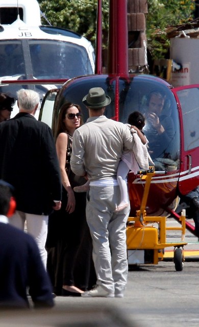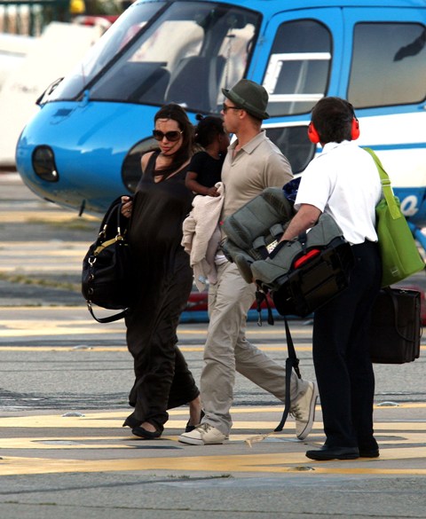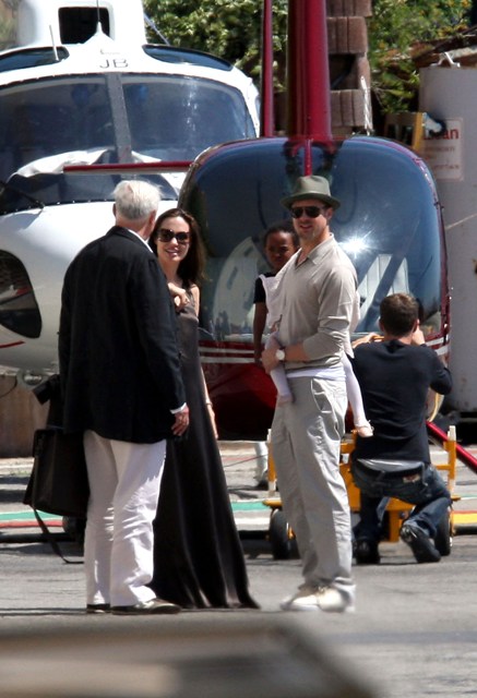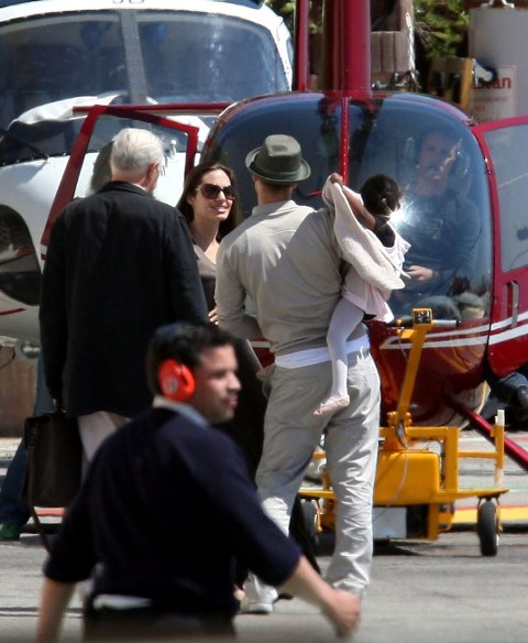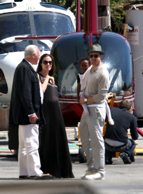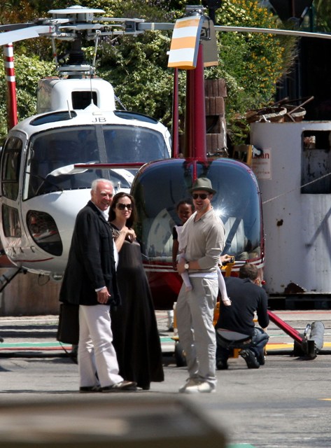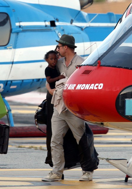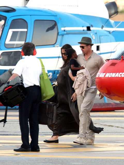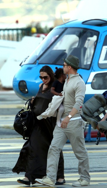 Check out photos of Brad and Angelina over the weekend, reportedly staying at Paul Allen’s villa in Saint Jean Cap Ferrat and also popping out for a few hours via helicopter on Saturday with Miss Zahara. Apparently they went to suss out a large property, evidently still looking to purchase a home. France not only has sentimental connection to Angelina’s mother but its paparazzi laws are also much stricter in comparison to other countries. Note that Johnny Depp and Vanessa Paradis and their kids are rarely ever shot candidly while in France.