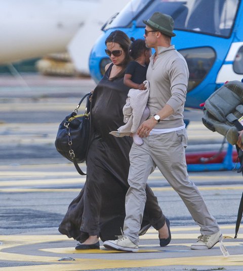 There’s a glowing Angelina, beautiful and pregnant. There’s Brad sexy as hell, like many dads, trying to converse patiently with 6 year old Maddox. There’s Miss Zahara as sassy as ever. And there’s the Chosen One Shiloh in her mother’s arms.