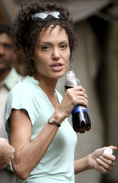 Angie on set, not pregnant