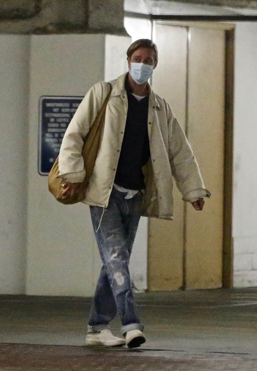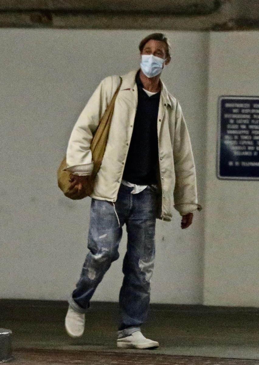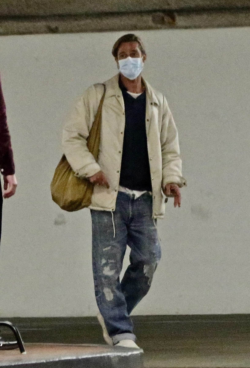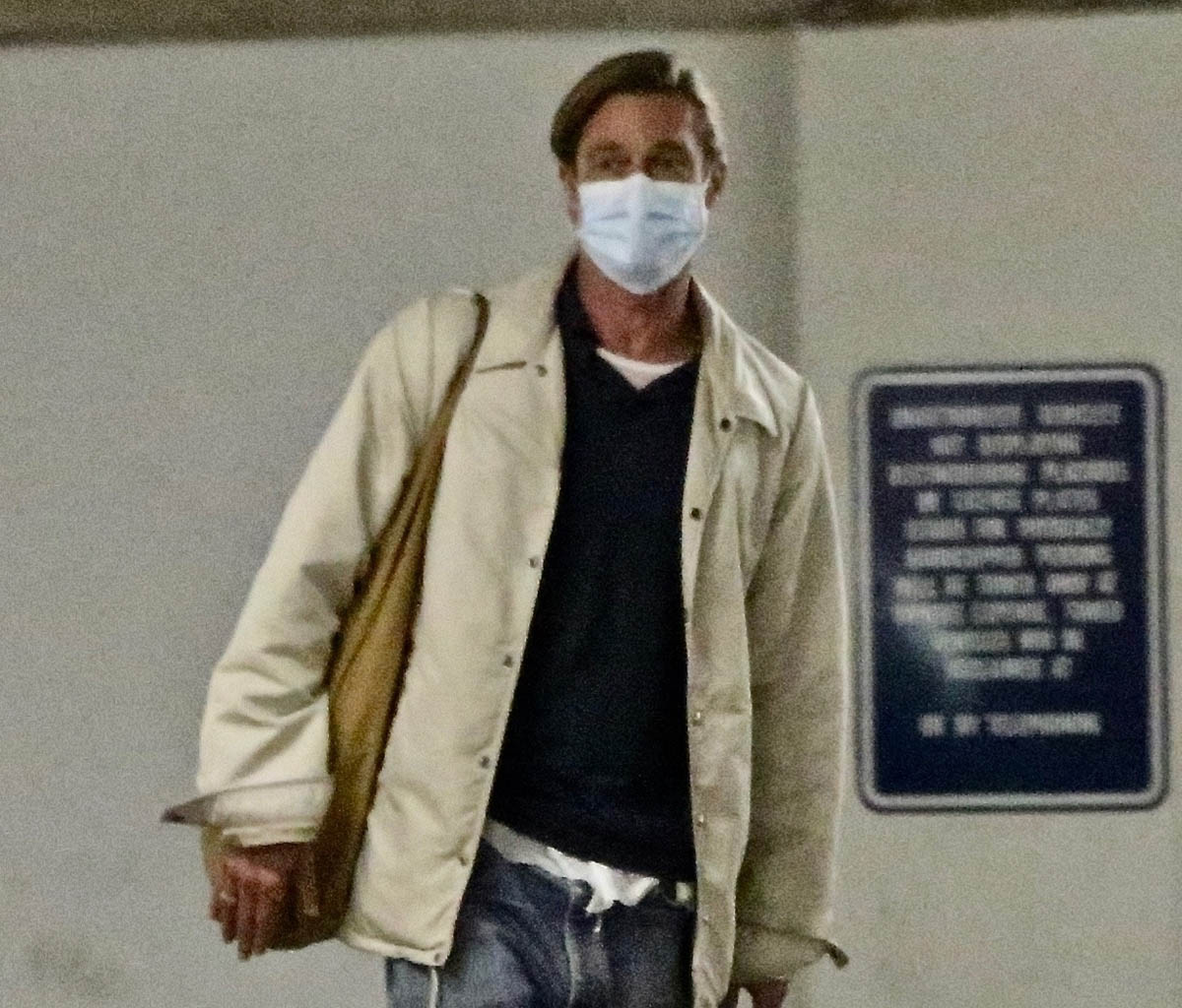 Brad Pitt was photographed yesterday in Beverly Hills leaving an office building after a long meeting or shoot. It’s unclear what he was doing but he is still in production for Bullet Train, which started shooting in November. Director David Leitch has been sharing some photos from set – here’s the most recent one: