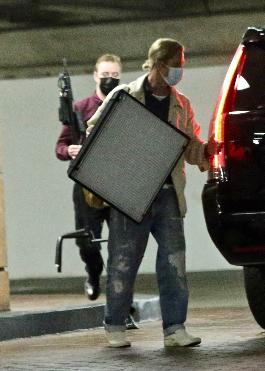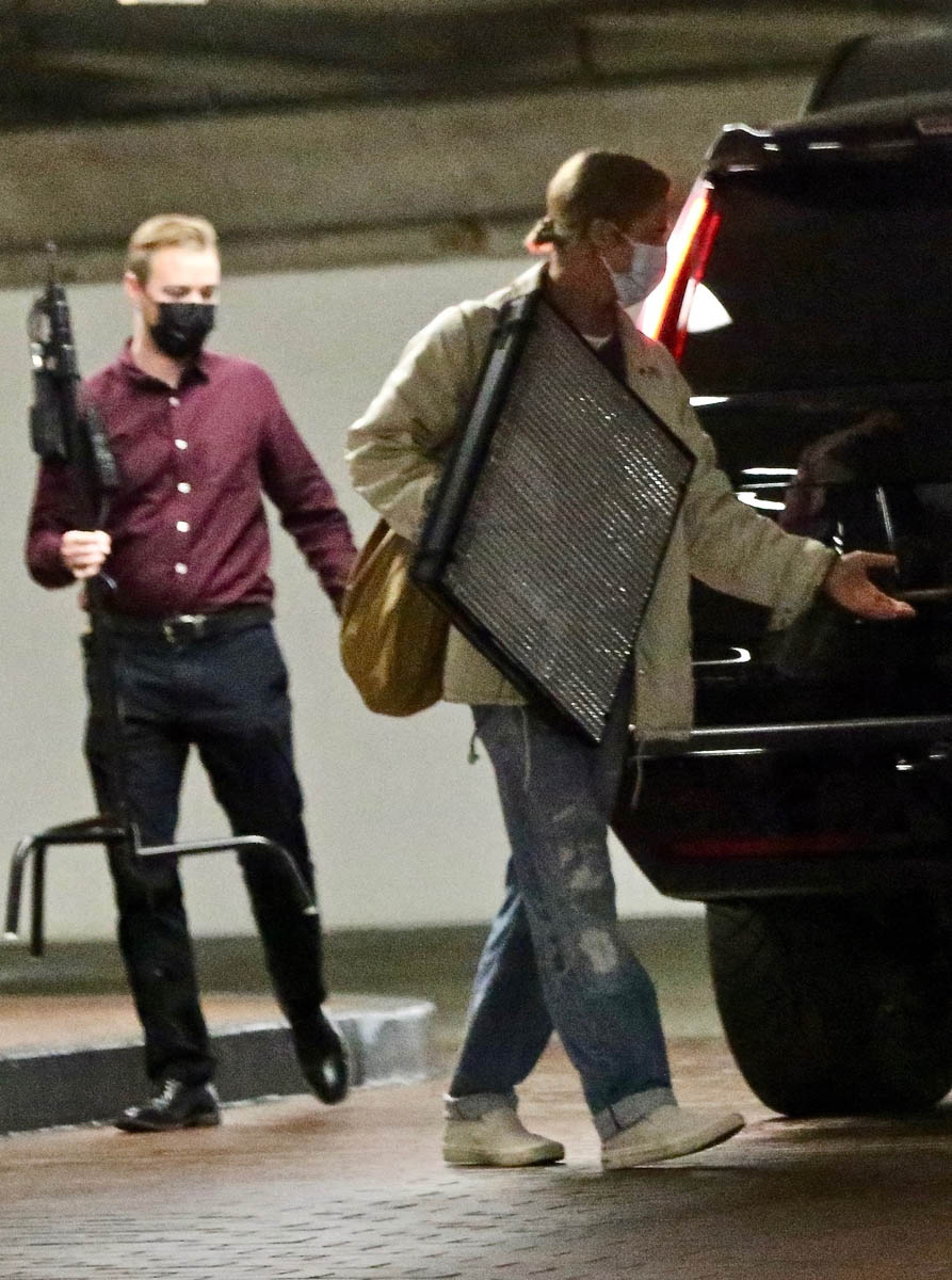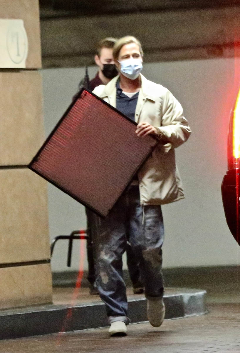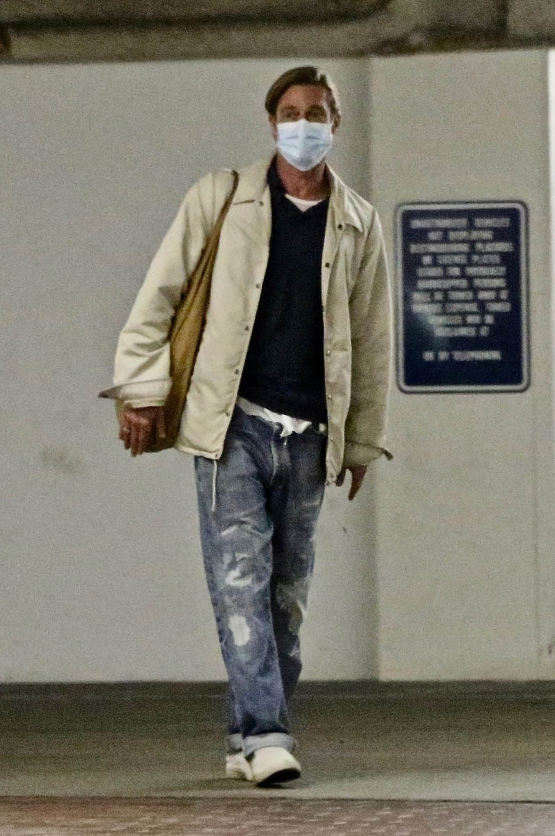 Brad Pitt was photographed yesterday in Beverly Hills leaving an office building after a long meeting or shoot. It’s unclear what he was doing but he is still in production for Bullet Train, which started shooting in November. Director David Leitch has been sharing some photos from set – here’s the most recent one: