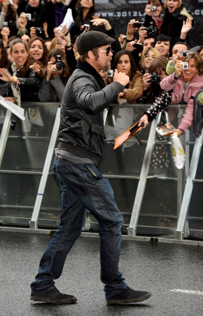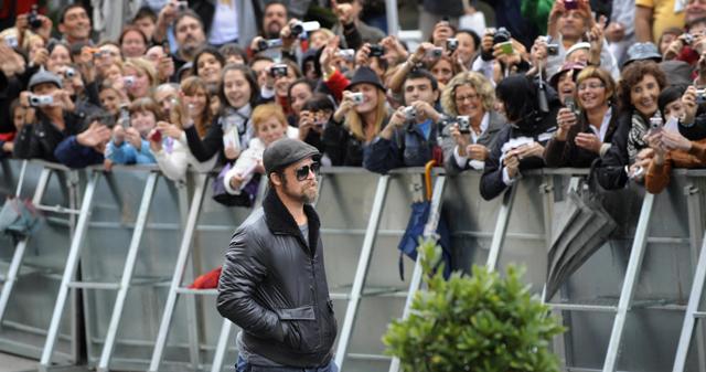 Brad Pitt arrived today at the San Sebastian Film Festival in Spain to promote Inglourious Basterds. As you can see, he’s letting his beard run wild. Gross.