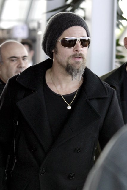 Brad Pitt arrived in Nice today alone still working that scraggly beard and this just a day after a new Pitt Porn report surfaced online. They are returning fire in light of all those scandalous book allegations. Unfortunately I don’t know if I buy this one.