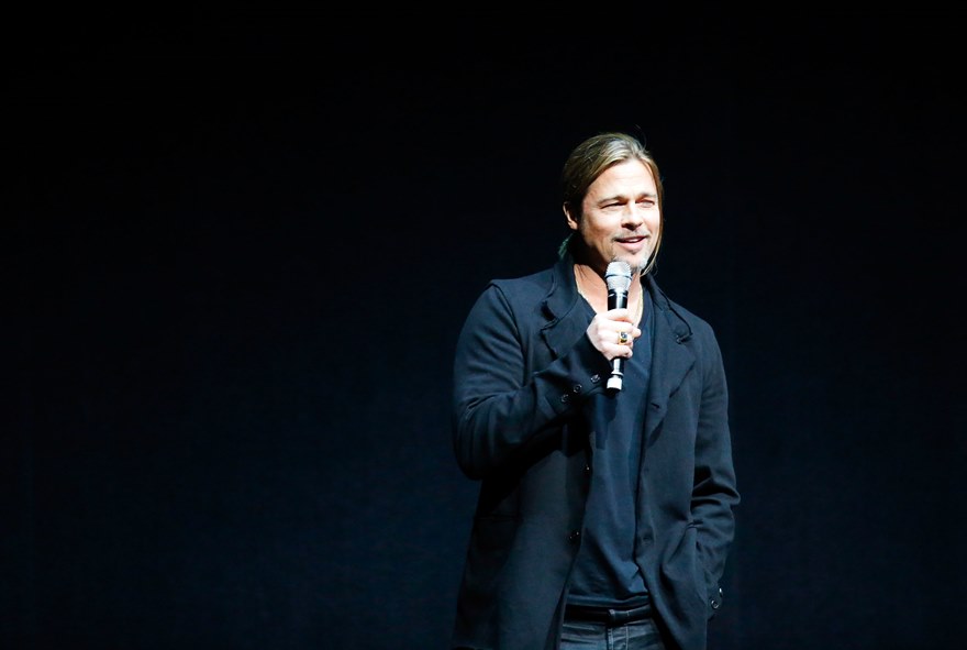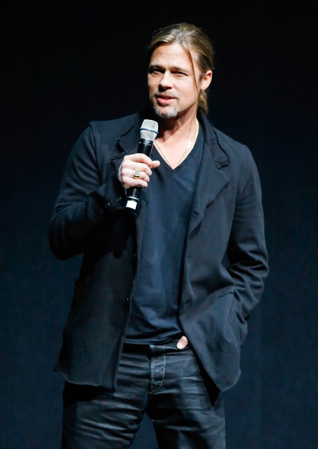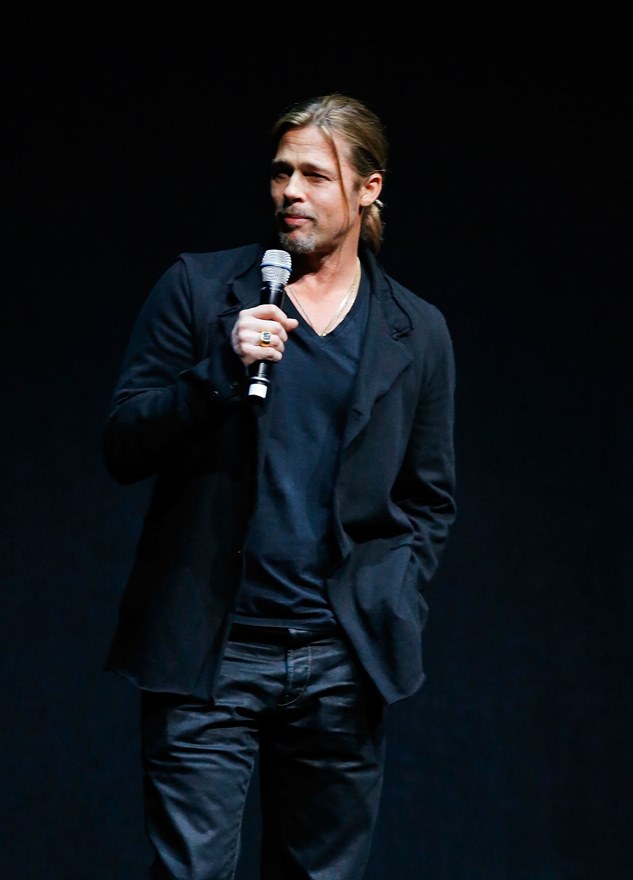 But Brad Pitt certainly needs a little RDJ magic on World War Z. Enough to show up at the MTV Movie Awards -- where he introduced himself to Selena Gomez!? we will discuss this later! -- and yesterday, with his new big face, in Vegas at CinemaCon as part of the Paramount presentation. Sarah has covered the World War Z production drama extensively on this site -- click here for a refresher -- and she shat on the first trailer here. But a more recent trailer and poster seemed to be an improvement -- click here to see -- and now, in front of an audience full of distributors, the studio thinks it will be a major hit this summer. Well, that’s what they’re supposed to say, right? WWZ is scheduled to be released on June 21, on a weekend sandwiched between Man Of Steel (June 14) and Channing Tatum’s White House Down (June 28). That’s not to say it’ll be a bomb (I’ll go ahead and predict Will Smith’s After Earth will take that this year), but they do need to hustle it.