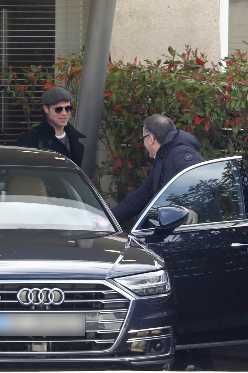 While Angelina Jolie was back in Hollywood at the Dumbo premiere last night with four of their six kids, Brad Pitt was in Paris, seen arriving at the airport and then later at the Musée d’Art Moderne. I just checked the website, the museum is closed until Friday which is when Thomas Houseago’s first retrospective in France will be presented until June. Brad’s been friends with the artist for some years and as we’ve seen over the last couple, he’s been photographed several times working on his own sculptures at Houseago’s studio. So Brad was there for an early view of the exhibit. Here’s a teaser video: