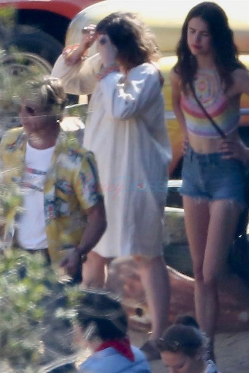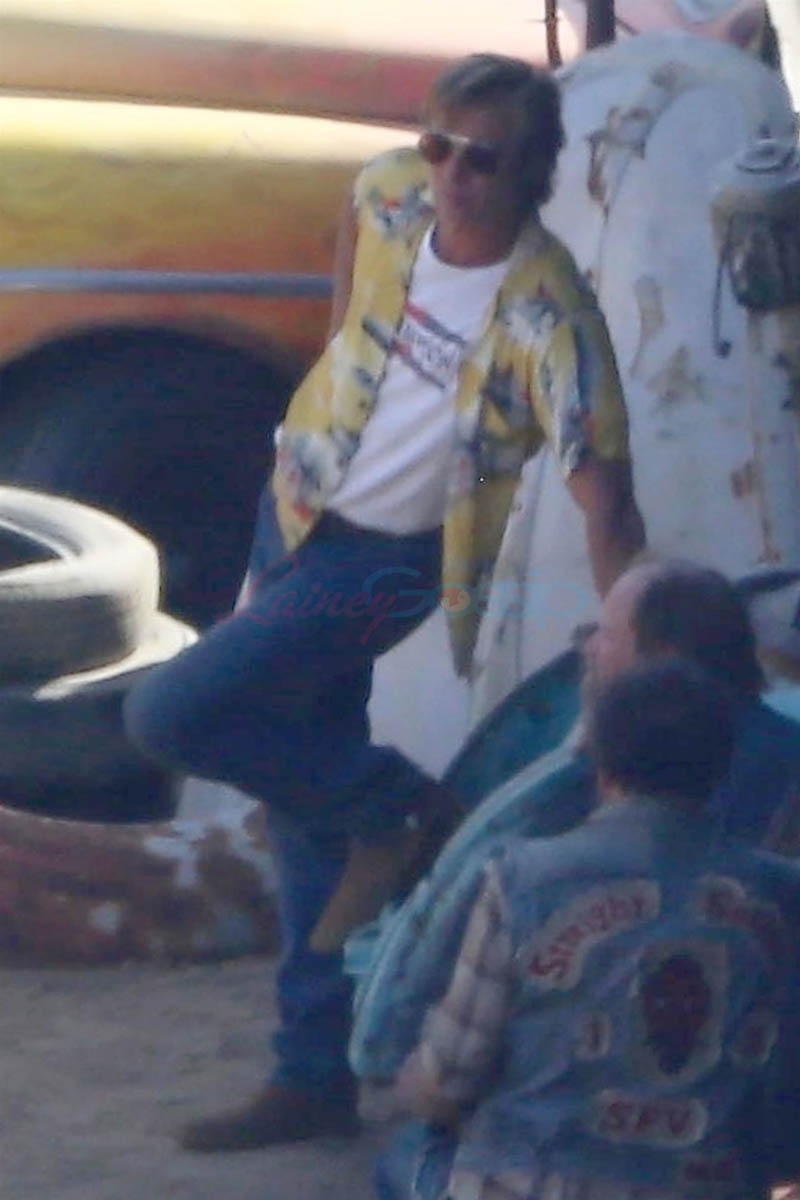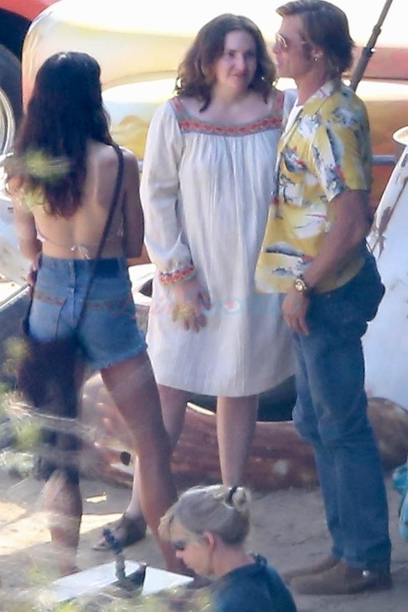 Here’s Brad on the set of Once Upon a Time in Hollywood with Margaret Qualley and Lena Dunham. Margaret (who worked on The Leftovers with Justin Theroux), by the way, is definitely Brad’s type. She was dating Cary Fukunaga as of last year but there have been no updates since then.
