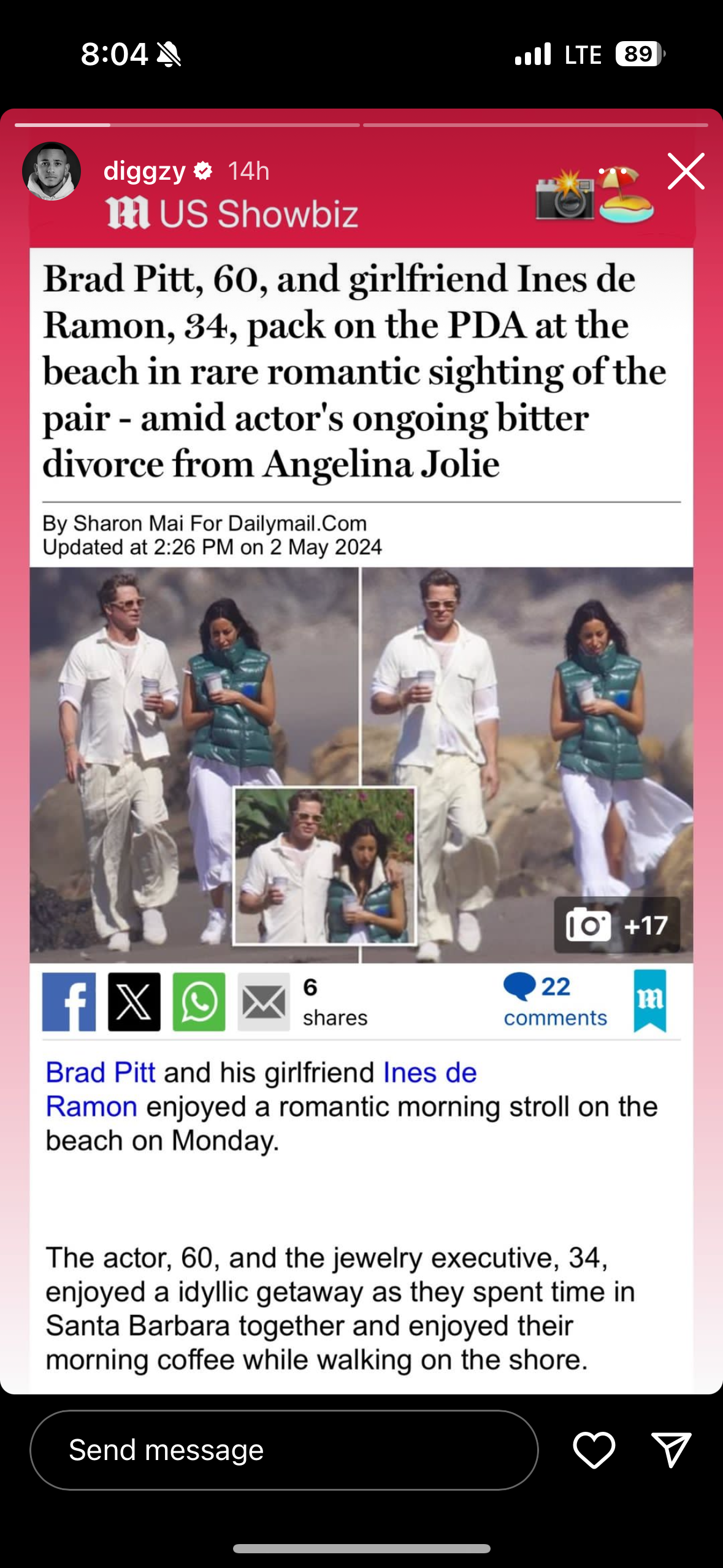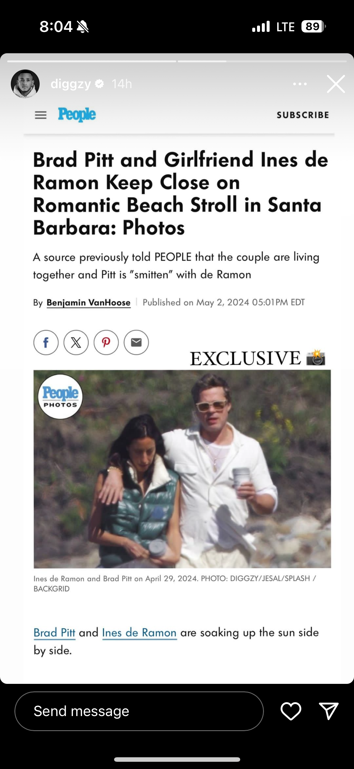 So from nostalgia to present day, there are new photos of Brad, once again on the beach, this time in Santa Barbara, with his girlfriend Ines de Ramon. You can see them at PEOPLE and the Daily Mail also paid for the exclusives. They are walking with their arms around each other, their dogs are frolicking by their sides – it’s idyllic bliss, a couple in love, the soft launch of a relationship that’s been known for over a year and it’s not like they haven’t been papped before, but never like this.