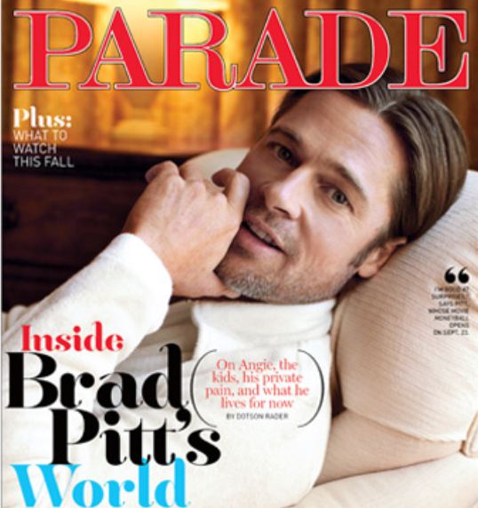 It’s a new interview with Parade Magazine. Parade Magazine is safe. Parade Magazine doesn’t push or probe. They basically throw softballs and sit there and hold the tape recorder. But Brad decided to offer up the smut anyway: