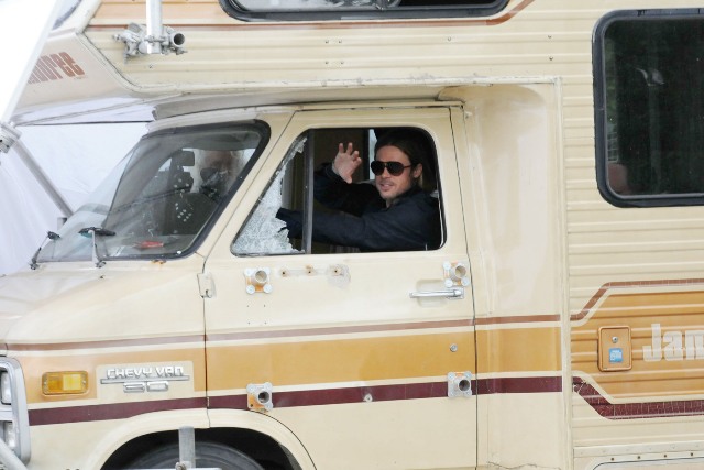 And also attached - Brad continuing to shoot World War Z in Scotland.