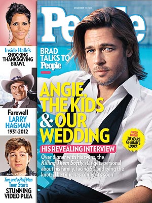 While US Weekly’s cover this week features a re-pregnant Porny, PEOPLE is going with Brad Pitt in advance of the release of his movie Killing Them Softly. And there’s an interview. Two years ago in Cannes, we were told that Brad would no longer be speaking with non-news outlets. Access was restricted to the Ann Currys and the CNNs as opposed to the Access Hollywoods etc, because Brad Pitt projects carry the same gravitas as whatever the President is doing.